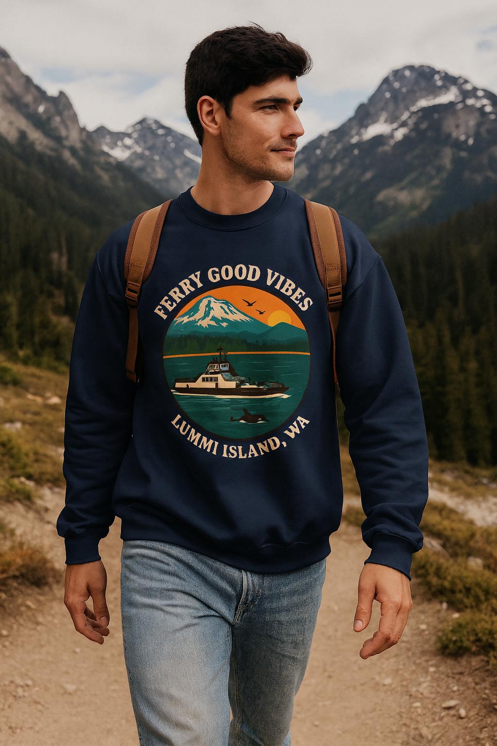 Ferry Good Vibes Crewneck Sweatshirt: Cozy Unisex Travel Apparel