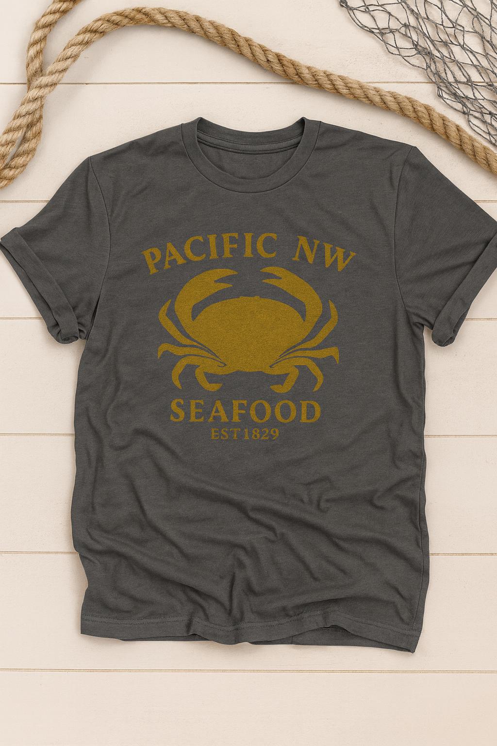 Fun Pacific NW Seafood tee featuring a dungeness crab, perfect for seafood lovers and those who enjoy the Pacific Northwest vibe. This tee is great for casual wear and would make a unique gift for someone who appreciates marine life and coastal cuisine. Ideal for beach trips, seafood festivals, or laid-back gatherings with friends and family.