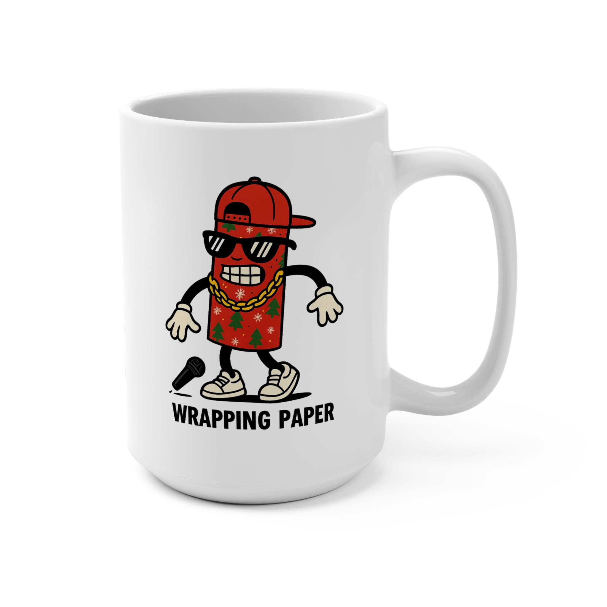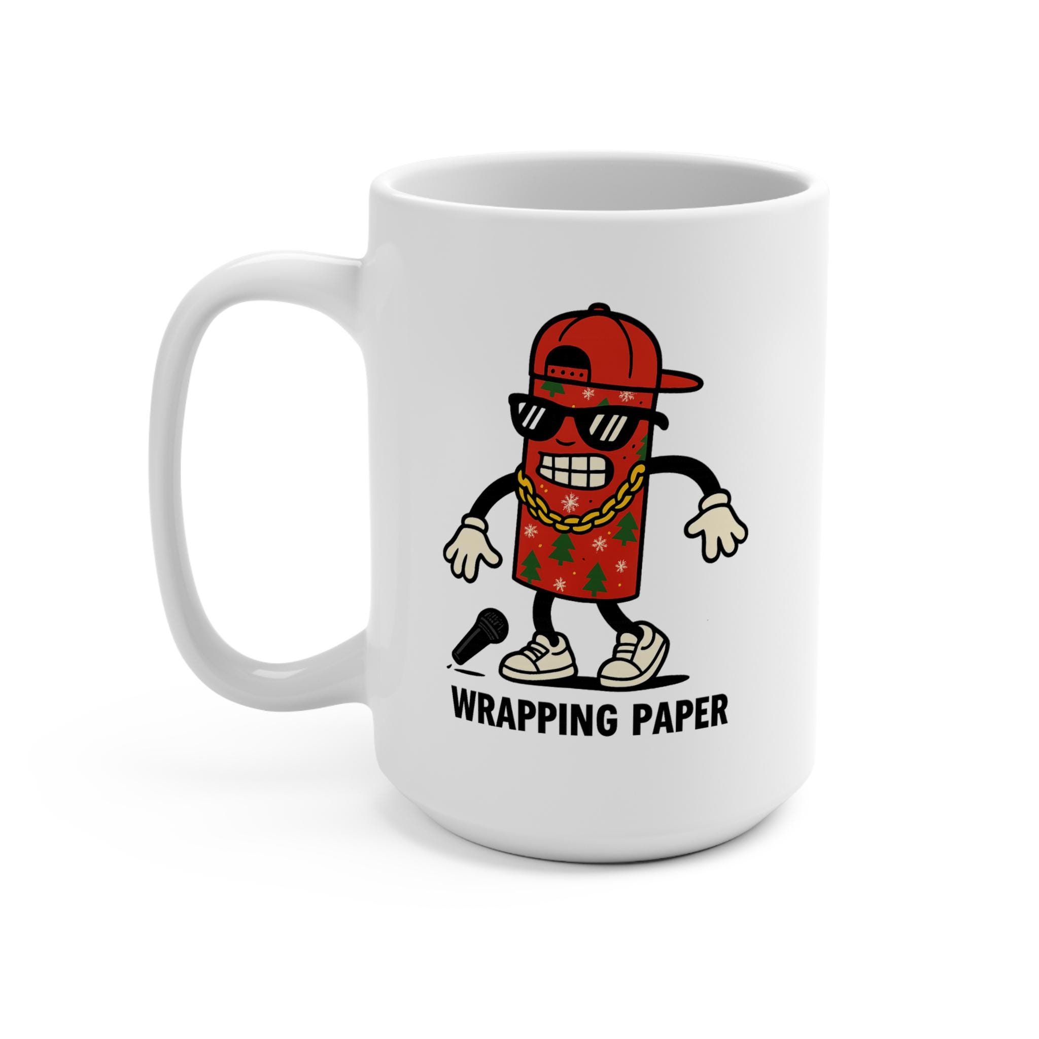 Funny Rapper Wrapping Paper Mug 15oz | Holiday Wrapper Illustration