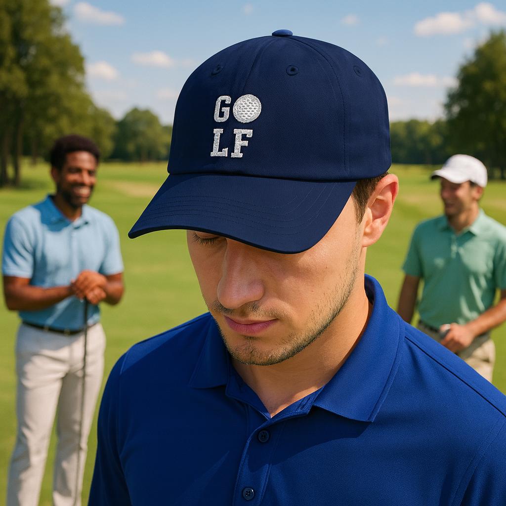 A thoughtfully embroidered golf cap that quietly speaks to mornings on the range and afternoons by the 18th green. The low-profile, unstructured crown sits close to the head, giving a relaxed silhouette that stays out of your way while you dial in a putt or chat at the clubhouse. The designer GOLF logo and subtle golf ball typography are restrained and confident — details fellow golfers will notice without shouting. Wear it to warm up on dew-soaked tees, to celebrate a round with friends, or simply on errands when you want to keep sun and glare in check. It ages well; the cotton softens with time and the precurved Permacurv® visor keeps its shape, so the cap looks lived-in and ready for the next game.