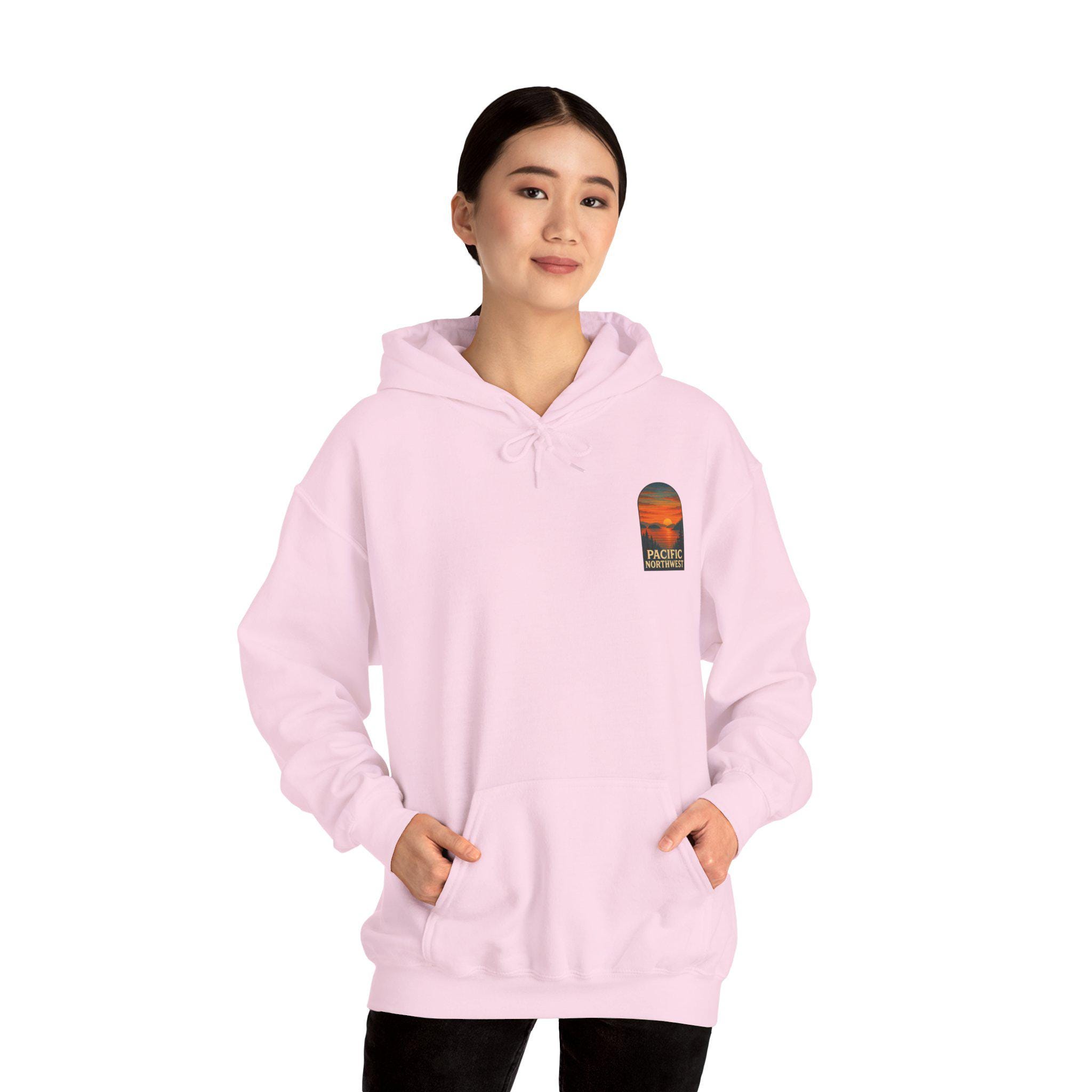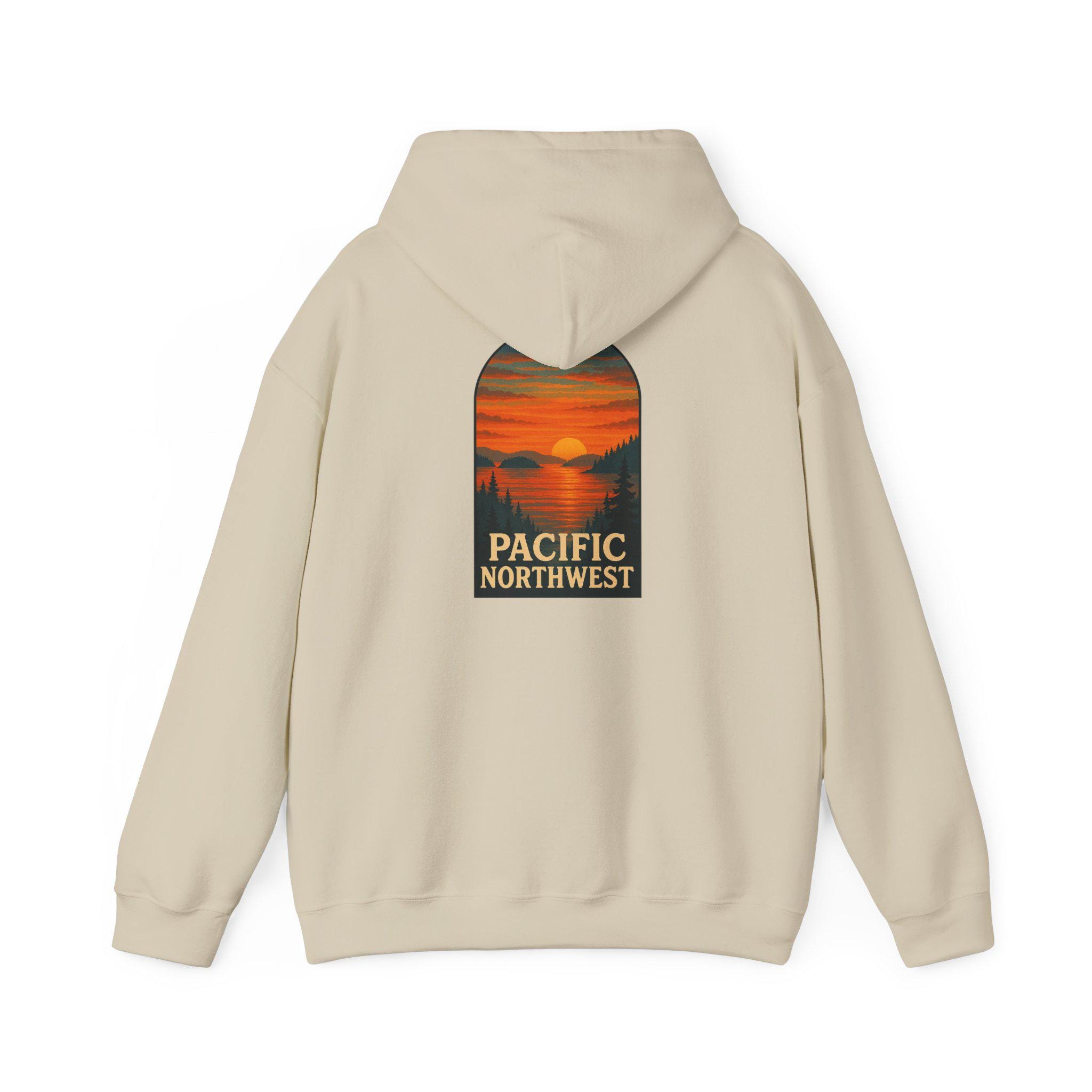 Wrap yourself in the cool, salt-tinged air of the San Juan Islands. This hoodie carries a quiet, island-side calm — misty mornings along pebbled shores, fir silhouettes against a pale sky, and long ferry rides that slow city time down. It sits comfortably over your layers for early-morning beach walks, ranger-station coffee runs, or evenings around a driftwood fire. The feel is both sturdy and familiar: a roomy hood to tuck into when the wind picks up, a soft pouch to warm your hands, and a classic cut that layers easily under a rain shell. For people who spend weekends exploring tide pools, charting small trails, or gathering shells with friends, this sweatshirt becomes part of the ritual — worn, lived in, and carrying the quiet memory of the islands every time you pull it on.