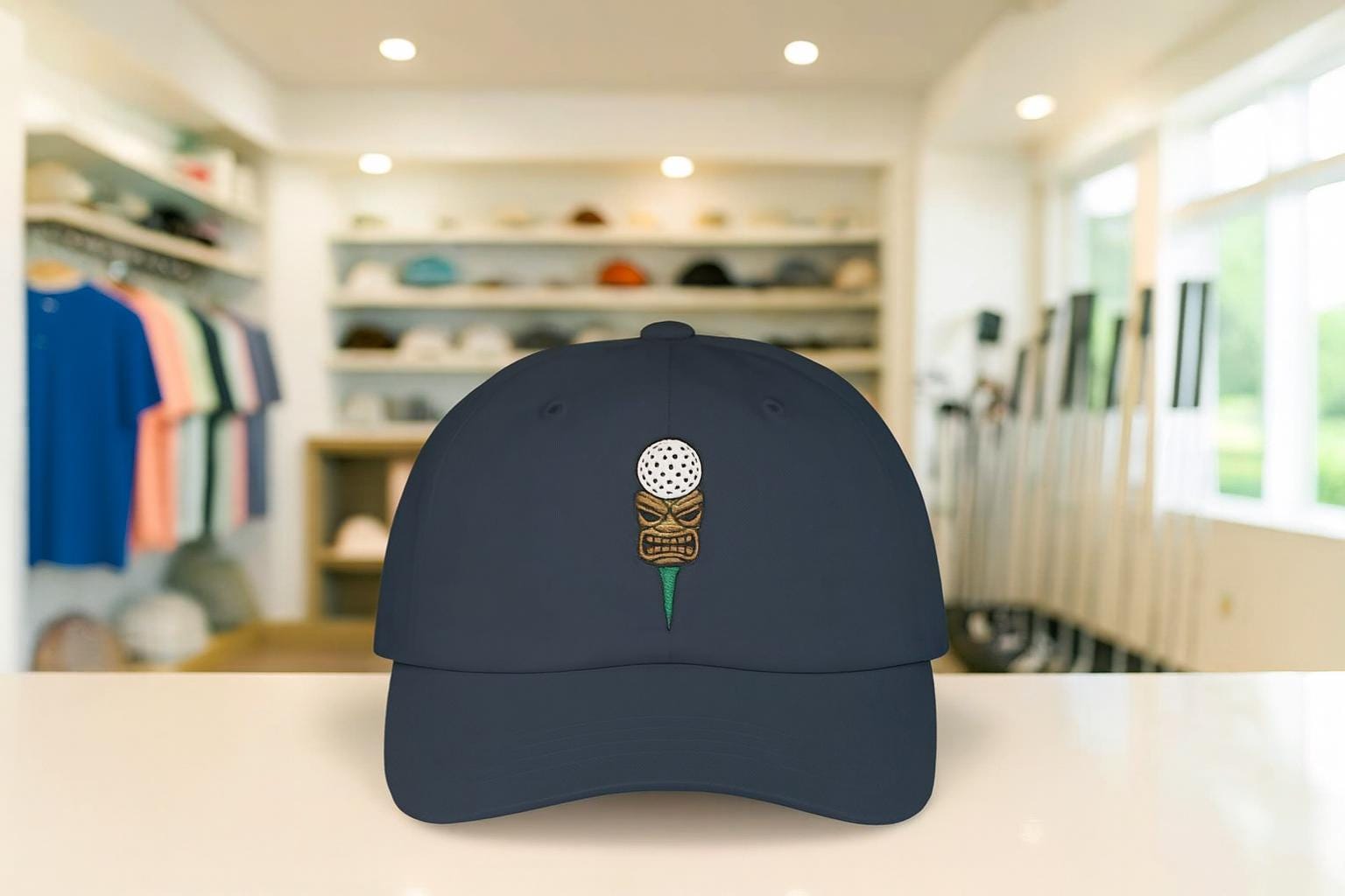 A laid-back dad cap that brings a playful tiki-golf vibe to sunny afternoons and clubhouse laps. Lightweight and breathable, it settles easily on your head and softens with every round. The precurved Permacurv® visor keeps glare down while the underbill color adds a subtle, coordinated pop. Worn on the course or at a backyard barbecue, this cap reads like an inside joke between friends who love vintage surf motifs and late-afternoon birdies. The adjustable hideaway strap with antique brass hardware lets you dial in a comfortable fit, and the low-profile, unstructured crown gives it that relaxed, lived-in look. Small details — like the sewn-in label and brand sticker on the visor — nod to quality without shouting. If you’re someone who enjoys playful kit that doesn’t take itself too seriously, this cap slides into rotation effortlessly for sunny rounds, tiki-themed gatherings, and long drives down to the local course.