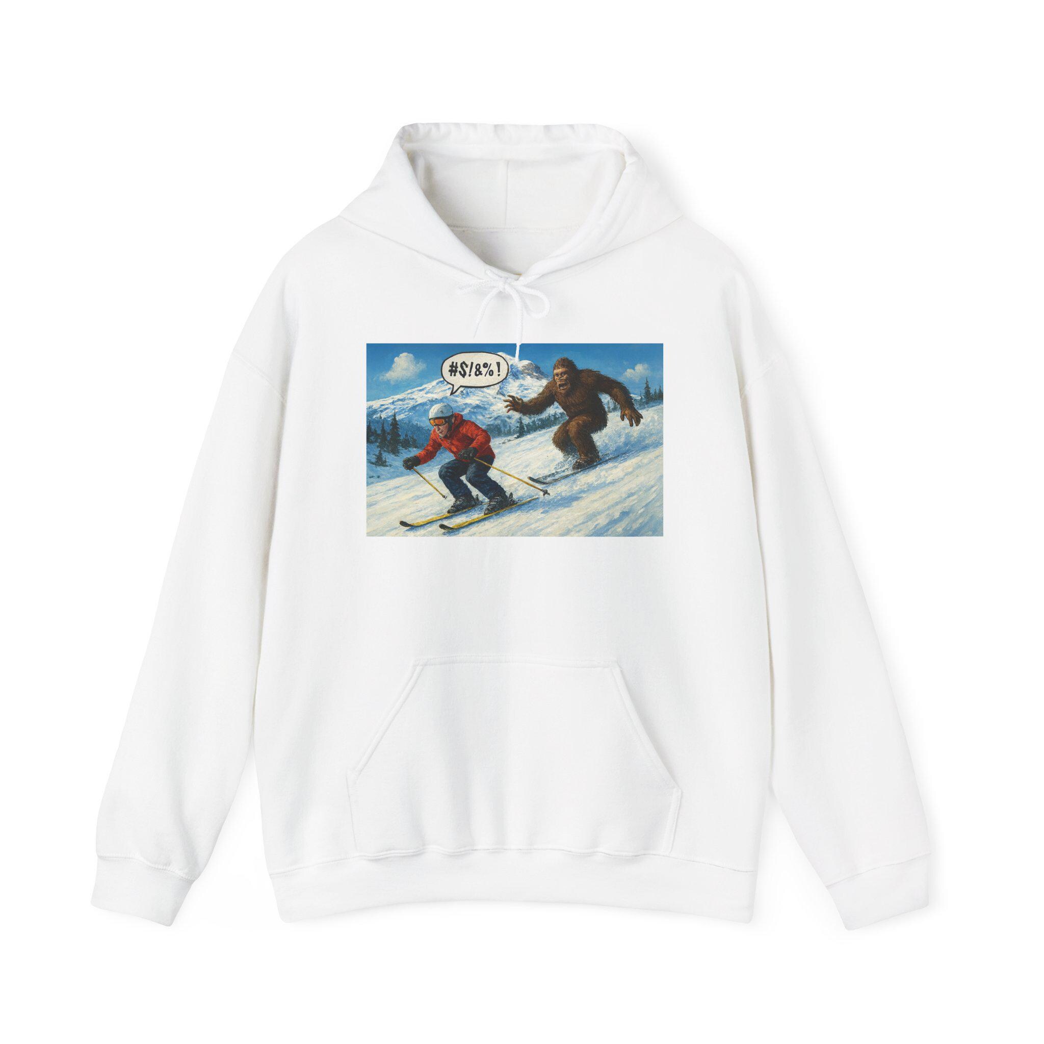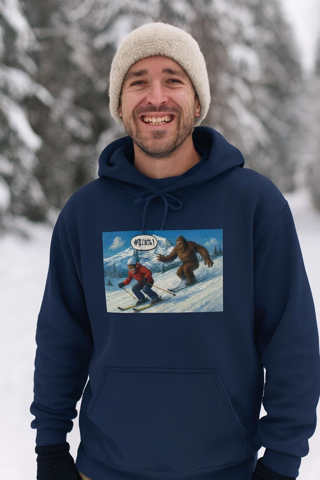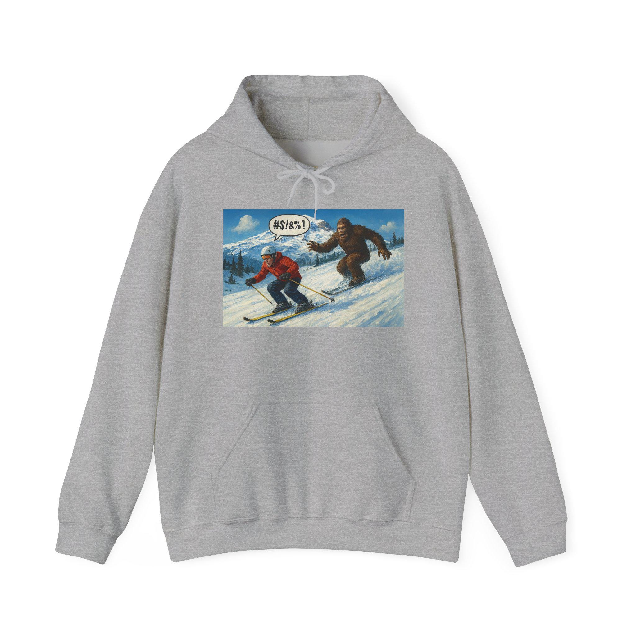 Bigfoot Skiing Chase Hoodie | Mount Rainier Sasquatch Skiing Swear Scene