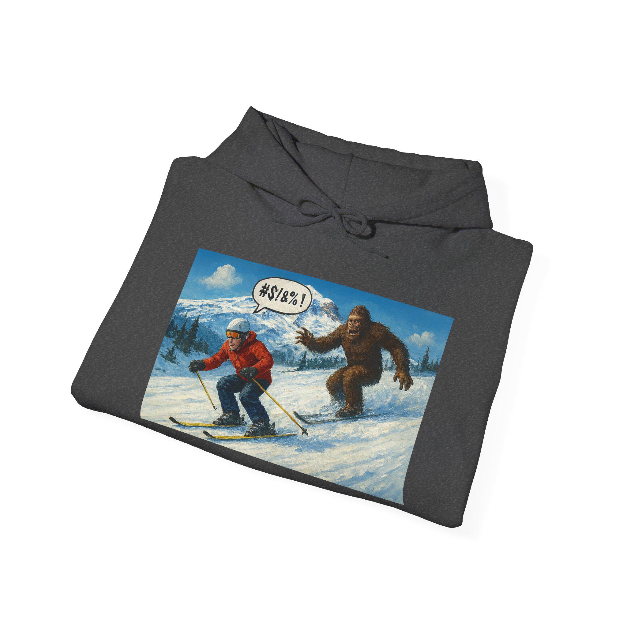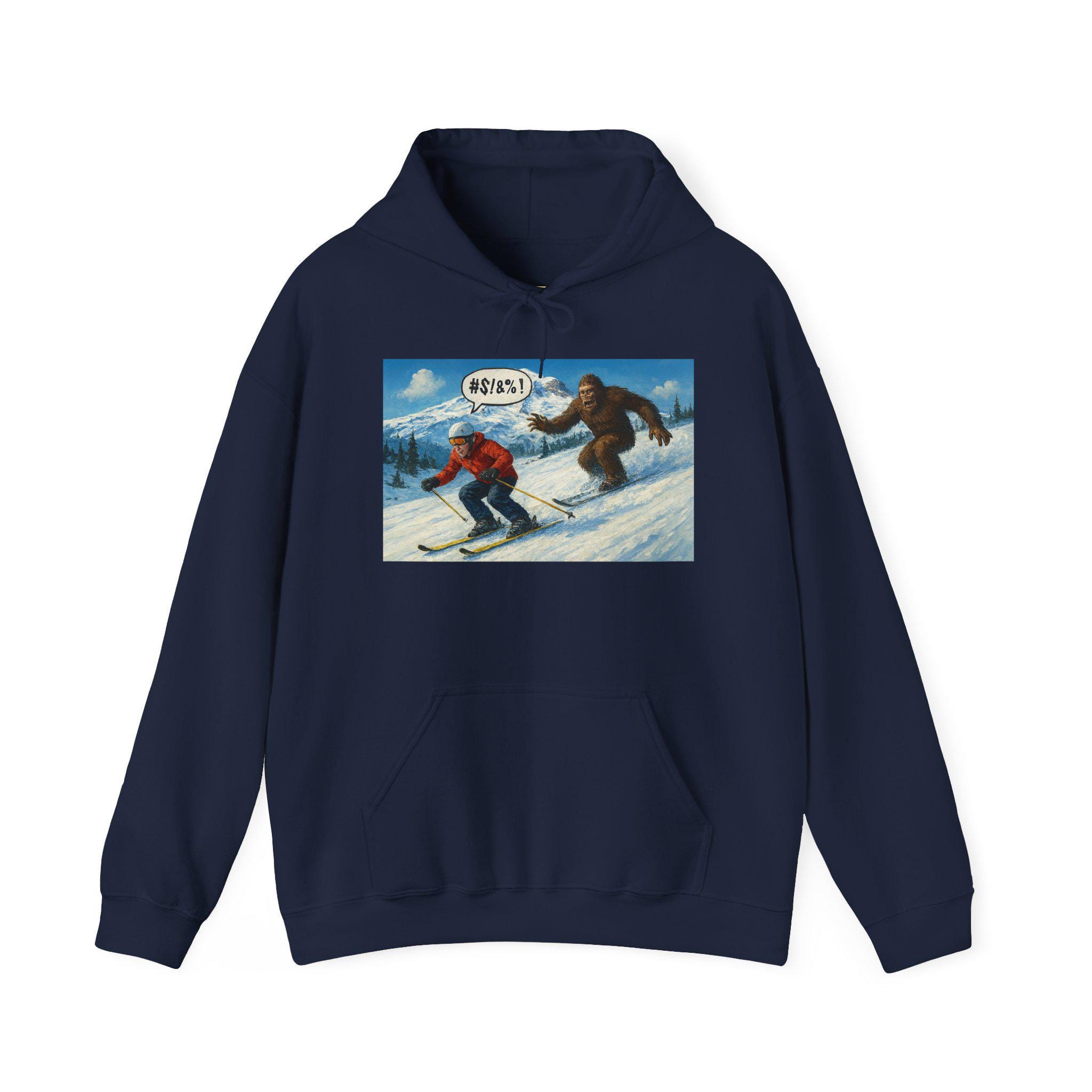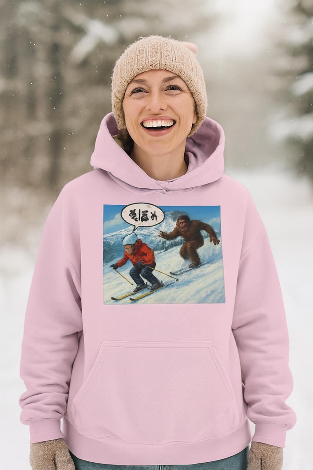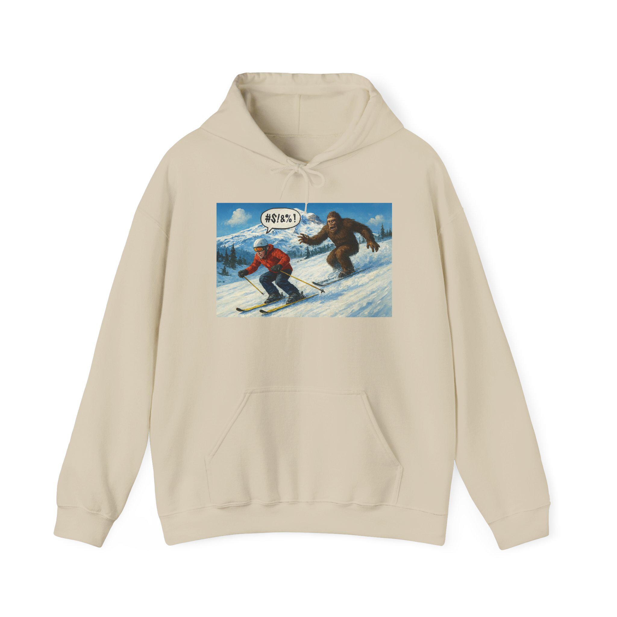 Bigfoot Skiing Chase Hoodie | Mount Rainier Sasquatch Skiing Swear Scene
