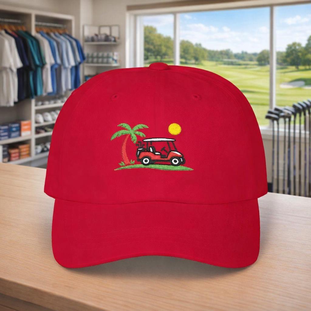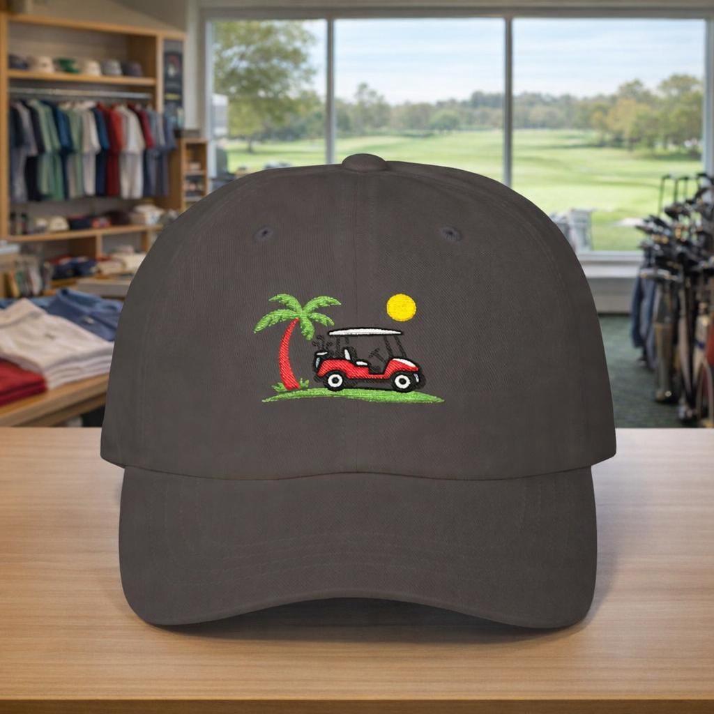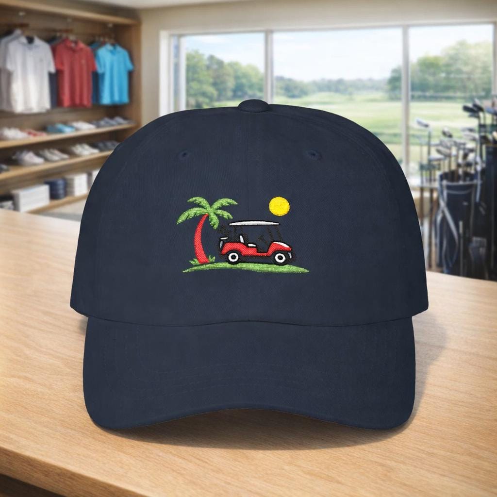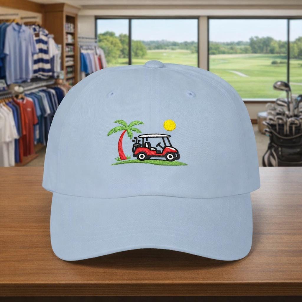 Golf Cart Palm Tree Logo Classic Dad Cap | Sunny Day Golf Hat