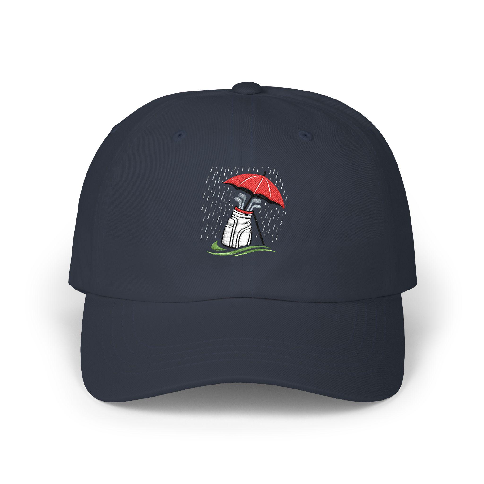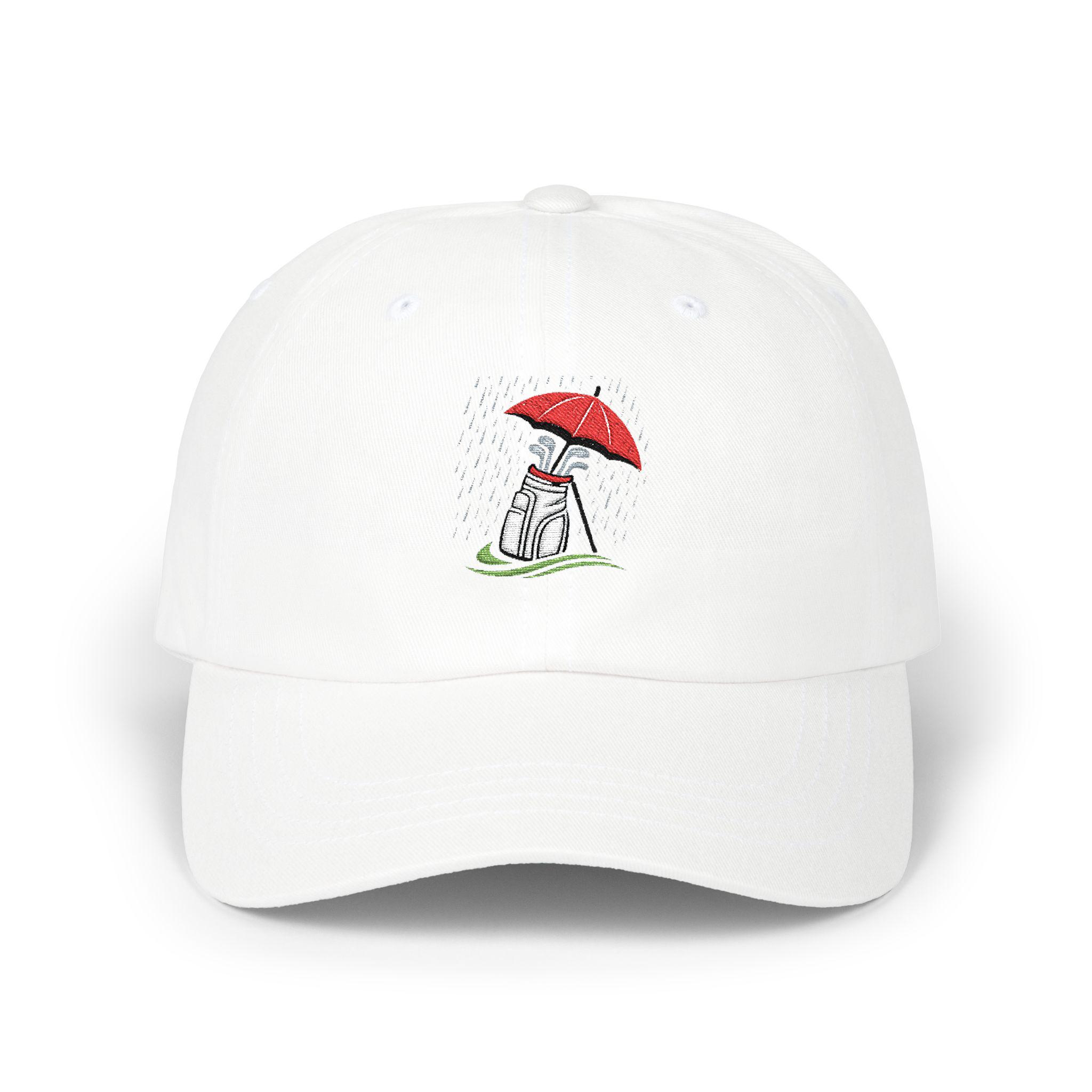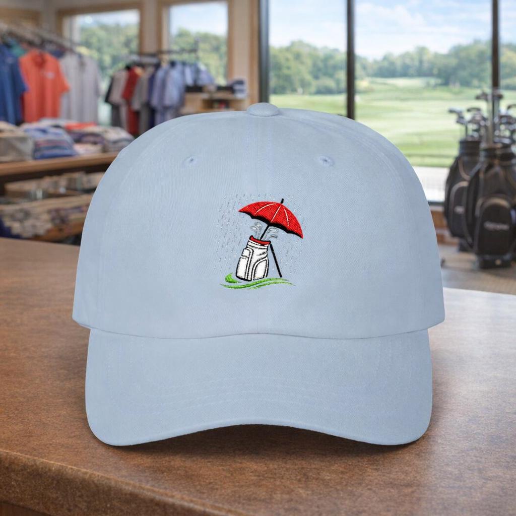Mud-splashed fairways and steady drizzle — this cap nods to golfers who swap sunshine for soggy rounds without hesitation. Lightweight and low-profile, it sits close to the head so rain and wind don’t become distractions. The embroidered golf bag beneath an umbrella is a quiet salute to winter rounds in the Pacific Northwest: soggy tees, early tee times, and the calm focus that comes from playing through the weather. Wear it on the walk between holes, hung on the clubhouse peg after a round, or tossed in your golf bag for those days when the forecast calls for grit instead of glory. The muted palette and durable visor keep glare low and style understated, so the hat becomes part of your routine — not a statement piece, but a companion for long, wet games.