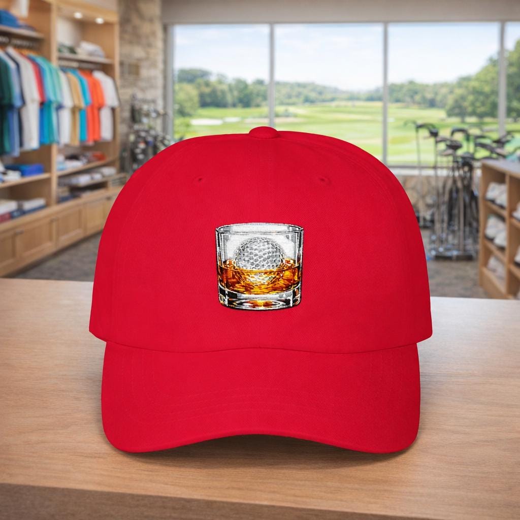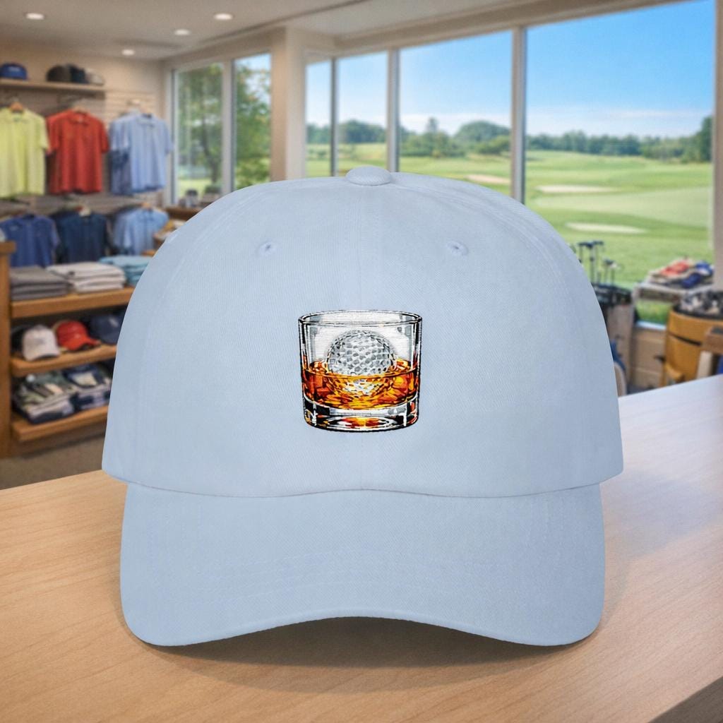 This cap brings a wink of laid-back clubhouse humor to every round. The embroidered graphic—an ice cube shaped like a golf ball holding a splash of whiskey—feels like a nod to slow afternoons on the course and easy conversations at the 19th hole. Lightweight and low-profile, it settles comfortably on your head without shouting for attention. Wear it on crisp early-morning tee times, breezy practice sessions, or casual outings when you want to show you play with a sense of humor and a relaxed rhythm. The muted underbill and curated stitches give it a refined, lived-in look that pairs naturally with polos, denim jackets, or a favorite golf sweater. It’s for players who appreciate the ritual as much as the score.