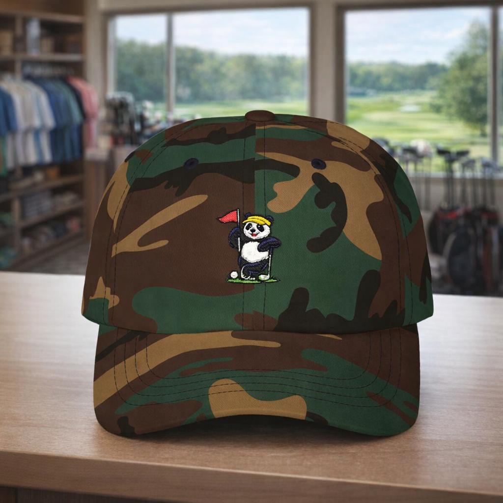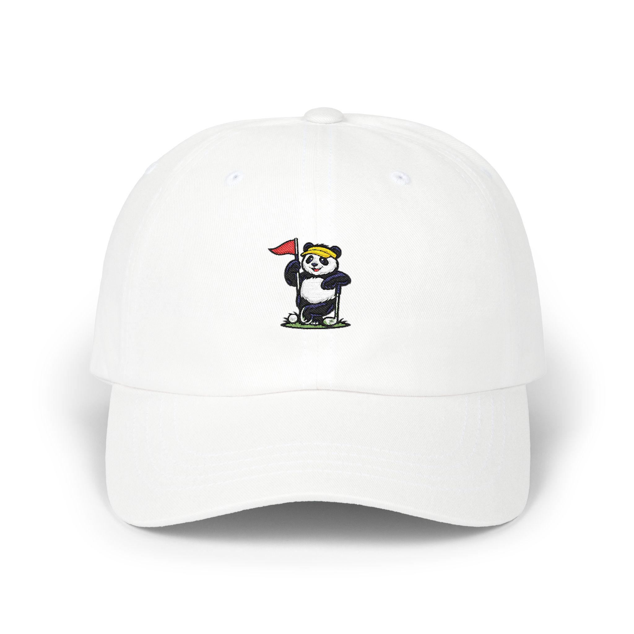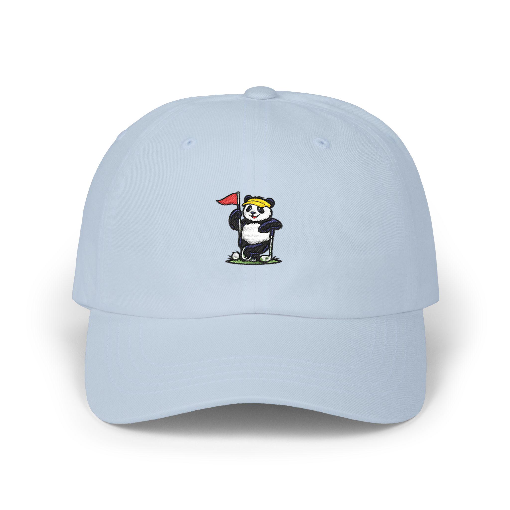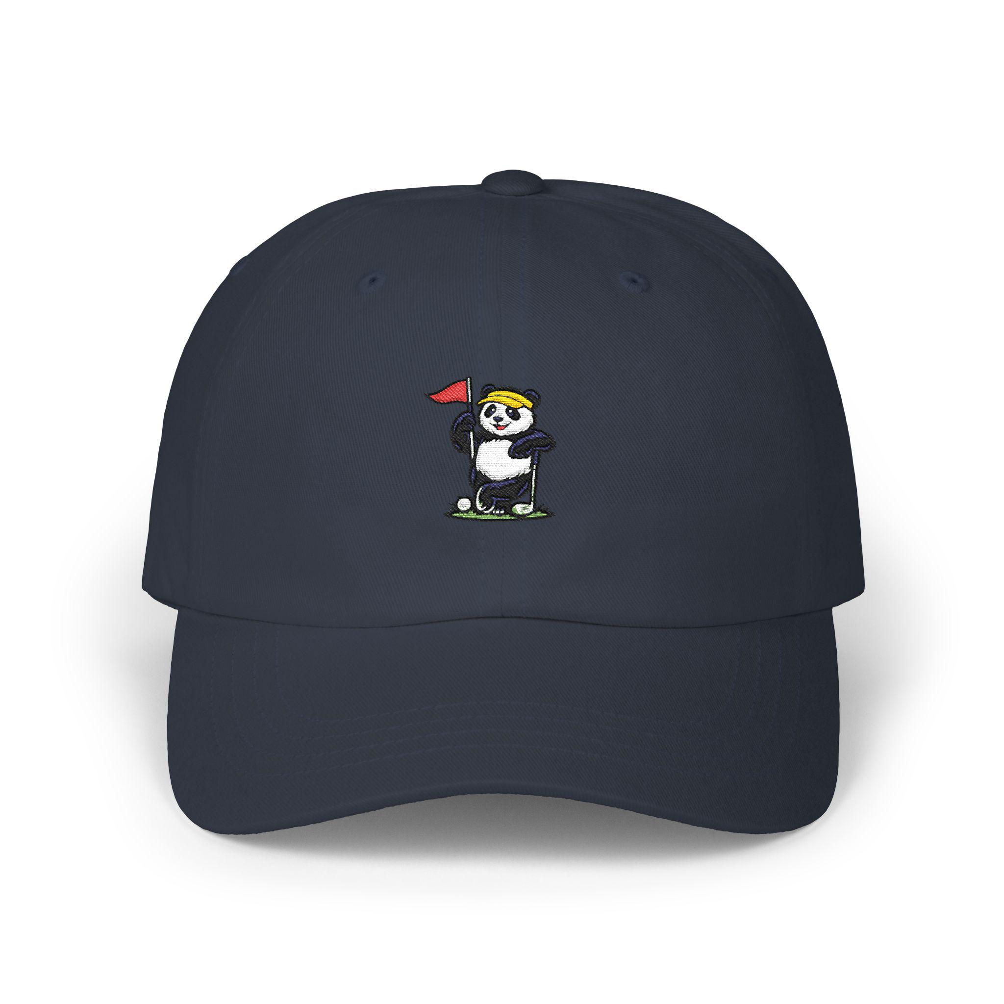 A laid-back cotton dad cap embroidered with a playful panda golfer mid-celebration. The low-profile, unstructured crown and precurved Permacurv® visor give it a relaxed, worn-in look that slips into everyday life—on the course, at the driving range, or on weekend errands. The panda logo, clutching a flag and golf club, reads like a wink to anyone who knows the small triumph of a birdie: quiet pride and an easy smile. The adjustable hideaway strap with antique brass buckle lets you fine-tune the fit, while the sewn-in label and brand sticker on the visor add subtle authenticity. Lightweight and breathable in 100% cotton (with select color blends), this cap feels familiar from the first wear and keeps its character round after round.