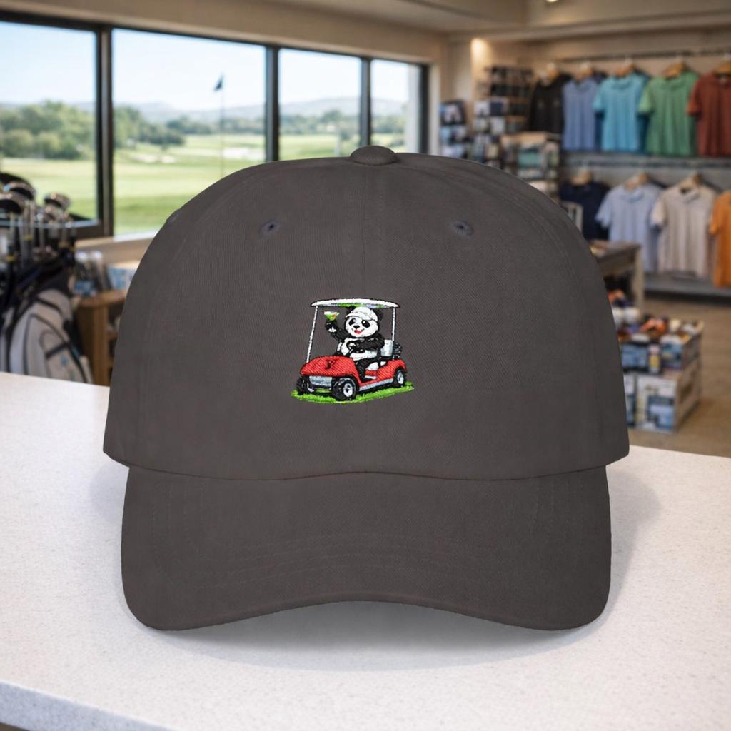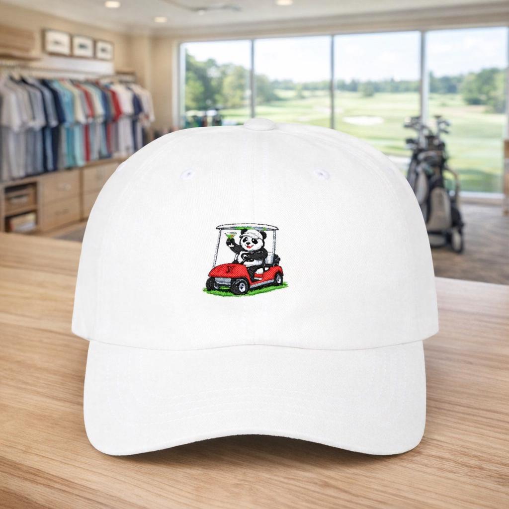 Panda Golfer Martini Golf Cap | Dad Hat with Golf Cart Logo
