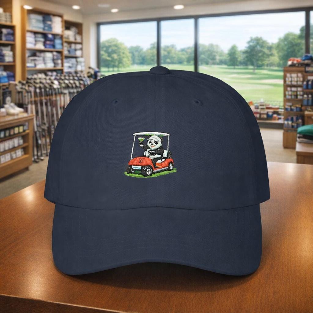 A laid-back golf cap that tells a story before you tee off. The embroidered panda—cocktail in paw, cruising his cart—adds a wink of humor to bright mornings on the fairway and slow afternoons at the clubhouse. Lightweight and low-profile, this cap sits casually on your head while keeping sun out of your eyes. It fits into rounds with friends, post-game drinks, and days when golf is as much social ritual as sport. Wear it to announce you don’t take every shot too seriously, and let the small, clever artwork spark conversations at the turn.