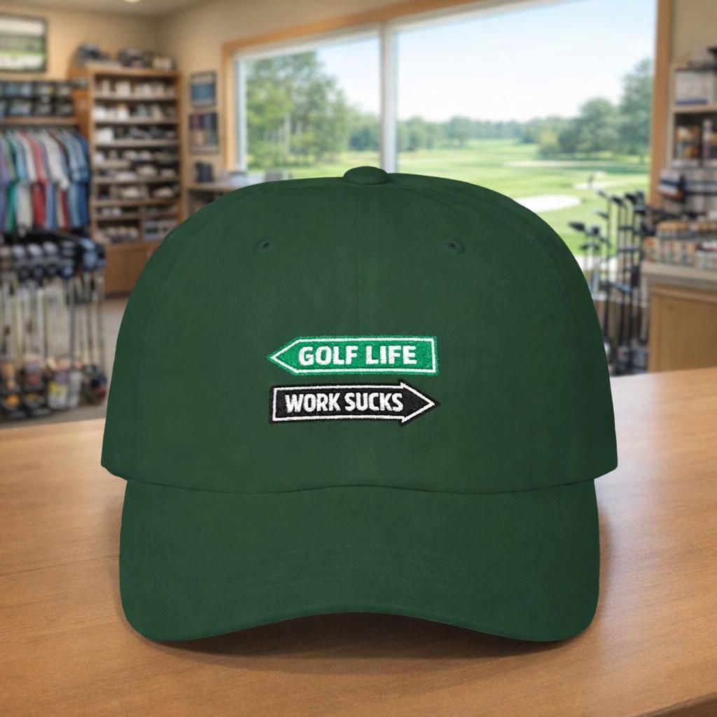 Golf Life vs Work Sucks Dad Cap, Golf Hat | Funny Golfer Sign Design