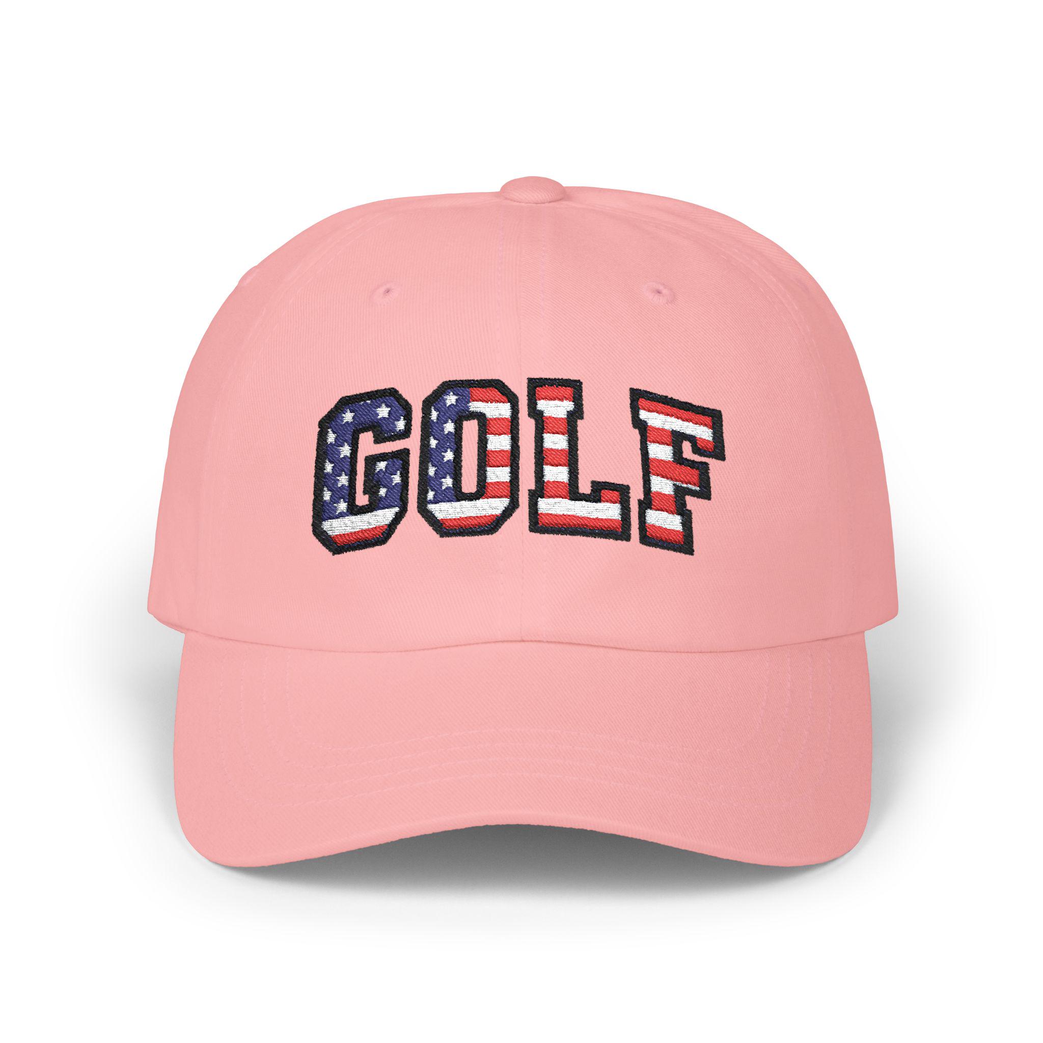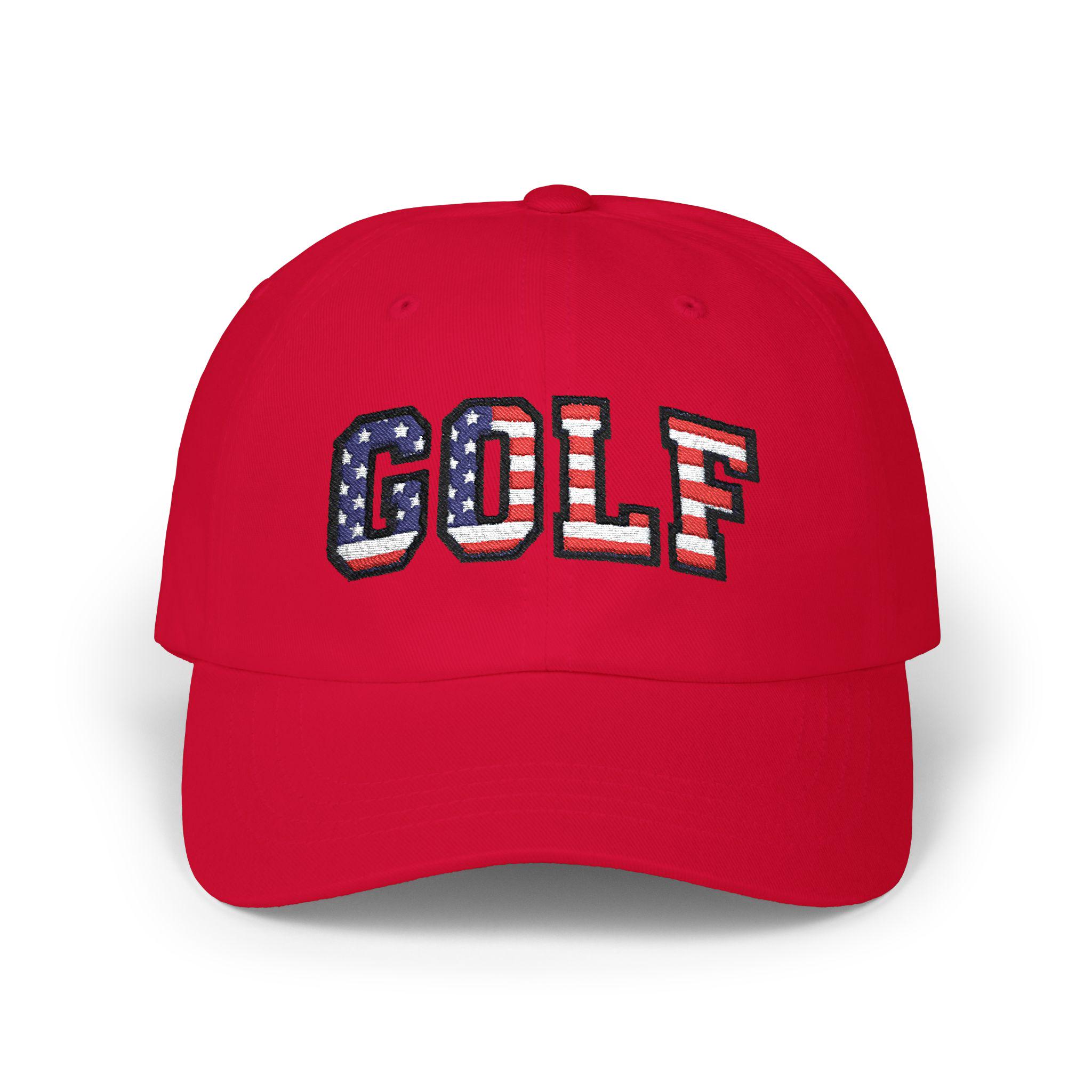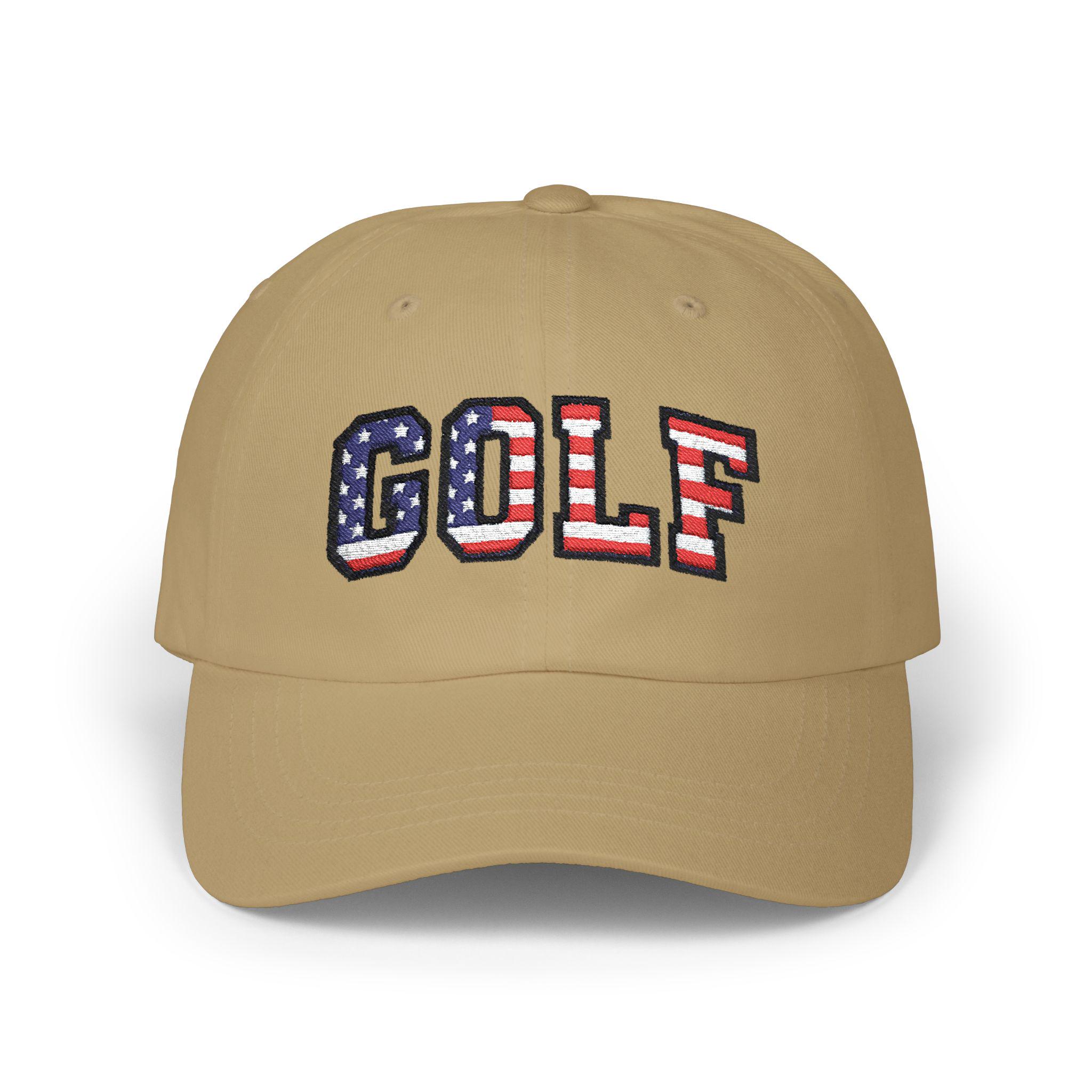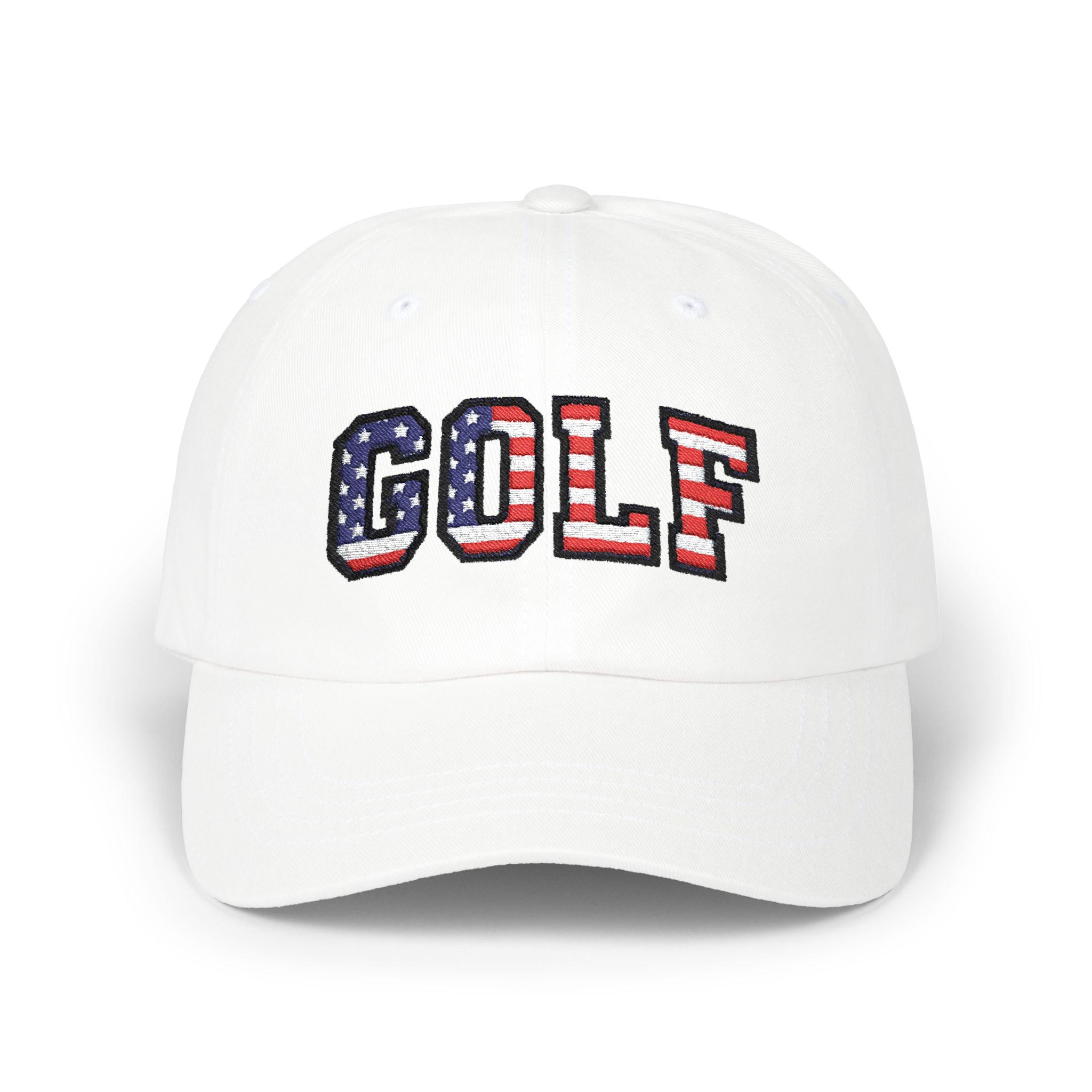 Carry a small, proud nod to July 4th, 2026 with this classic dad cap made for slow rounds and backyard barbecues. The GOLF lettering wears the colors of the American flag like a quiet celebration—subtle from afar, unmistakable up close. Lightweight cotton, a soft low-profile crown, and a precurved Permacurv® visor make it feel broken-in from the first wear. The hideaway strap with an antique brass buckle lets you dial in the fit, while the matched underbill keeps the look clean and intentional. Worn by weekend golfers and flag-waving neighborhood hosts alike, this cap settles into summer afternoons, early tee times, and holiday gatherings with easy, familiar comfort.