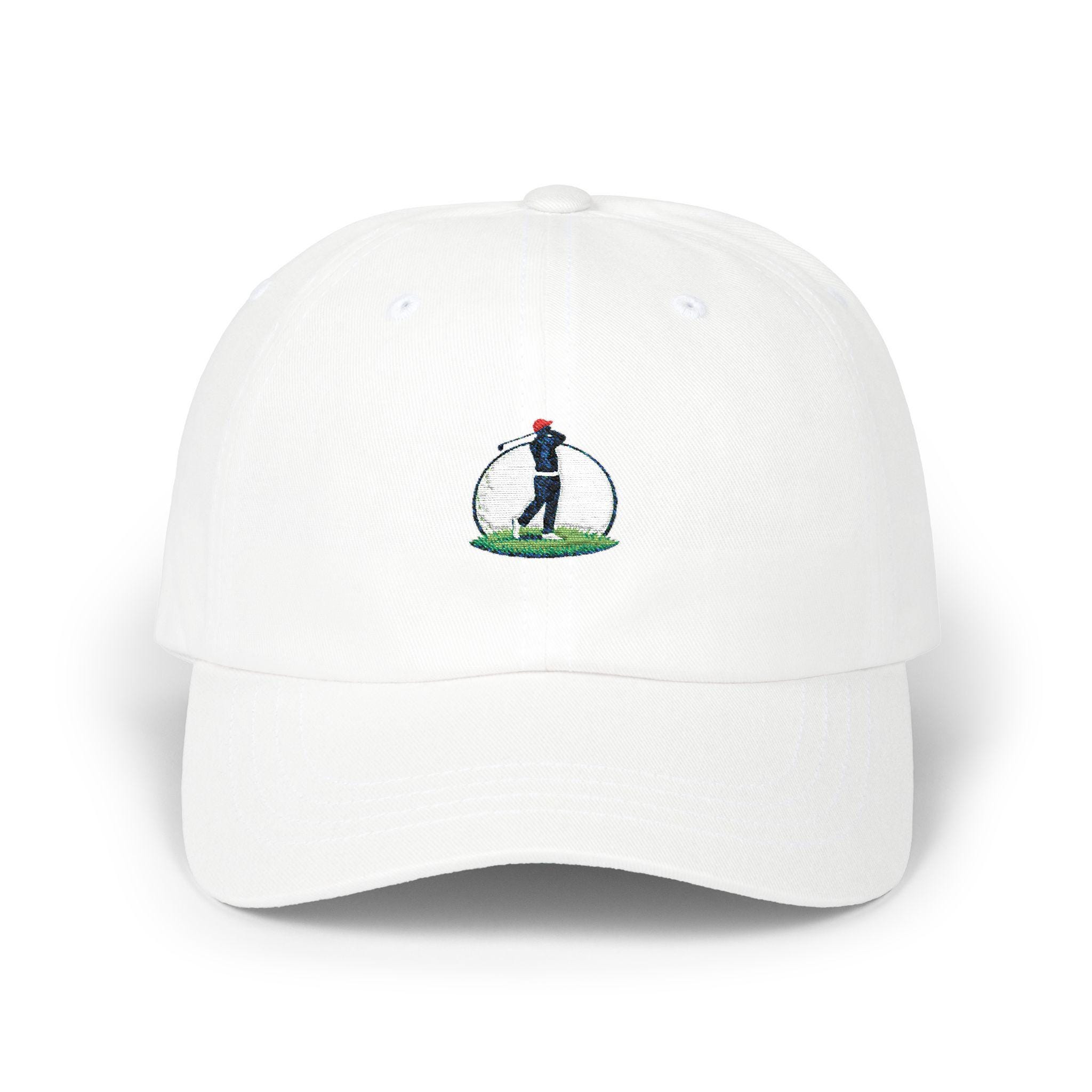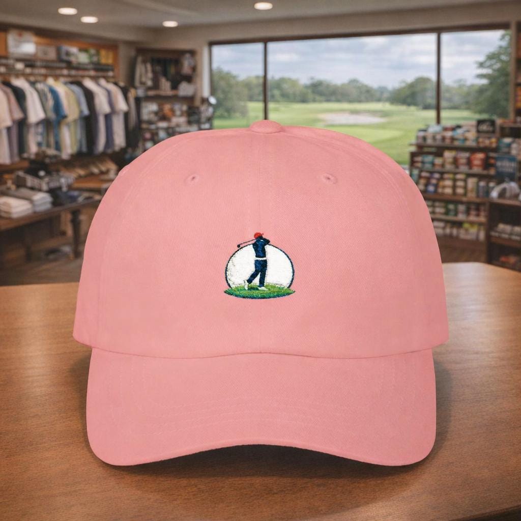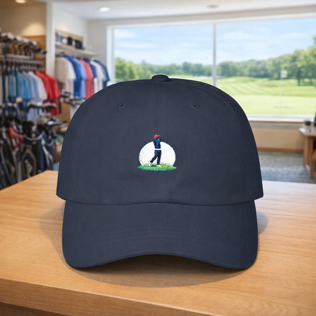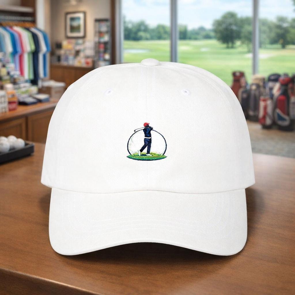 This golf cap carries the quiet confidence of someone who lives to lower their handicap. The embroidered golf-ball moon and golfer shadow catch the eye without shouting — a subtle nod to early-morning tee times, late-afternoon practice, and the small rituals of the green. Light and unstructured, it settles low on the brow and moves with you through brisk walks between holes or casual clubhouse hangs. The precurved Permacurv® visor keeps sun out of your eyes, while the adjustable hideaway strap with antique brass hardware lets you dial in a comfortable fit. It’s for the committed golfer who appreciates understated style and thoughtful details that speak to game-day routines and weekend rounds.