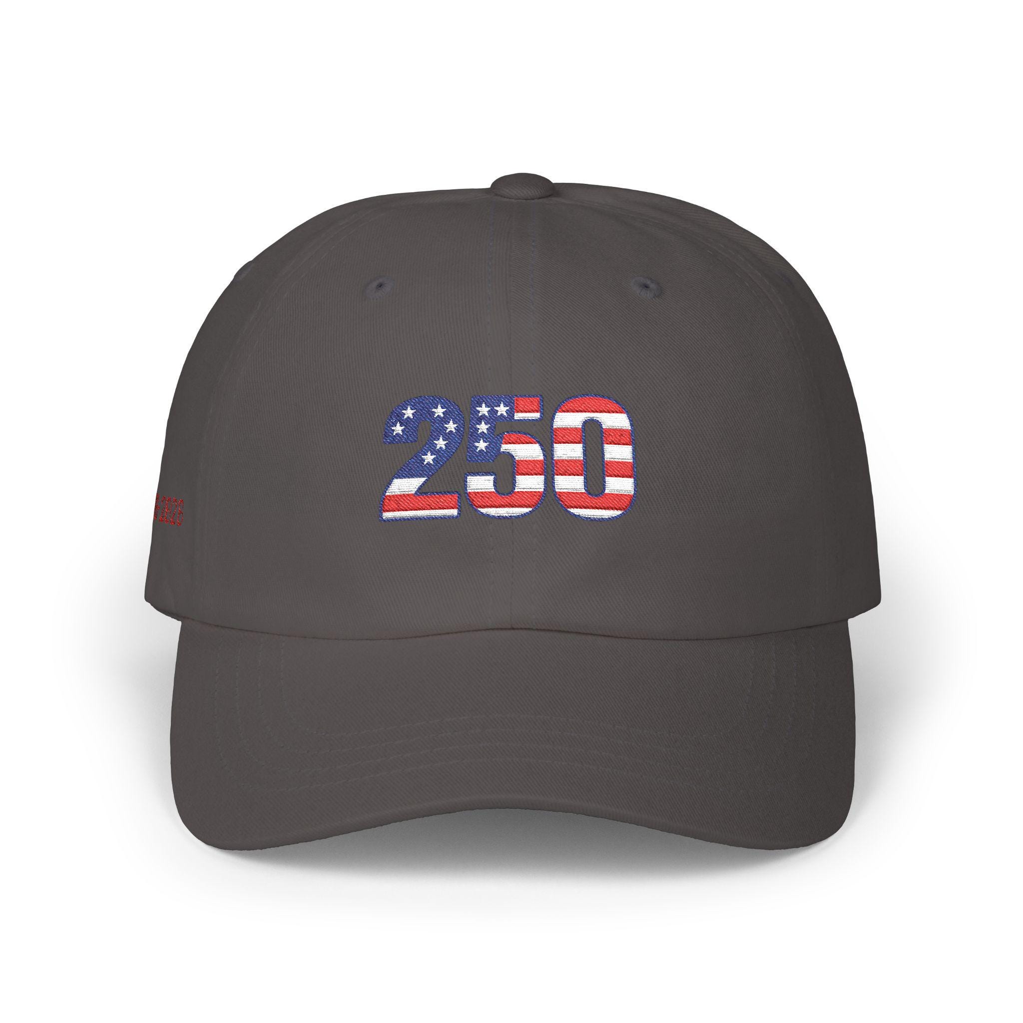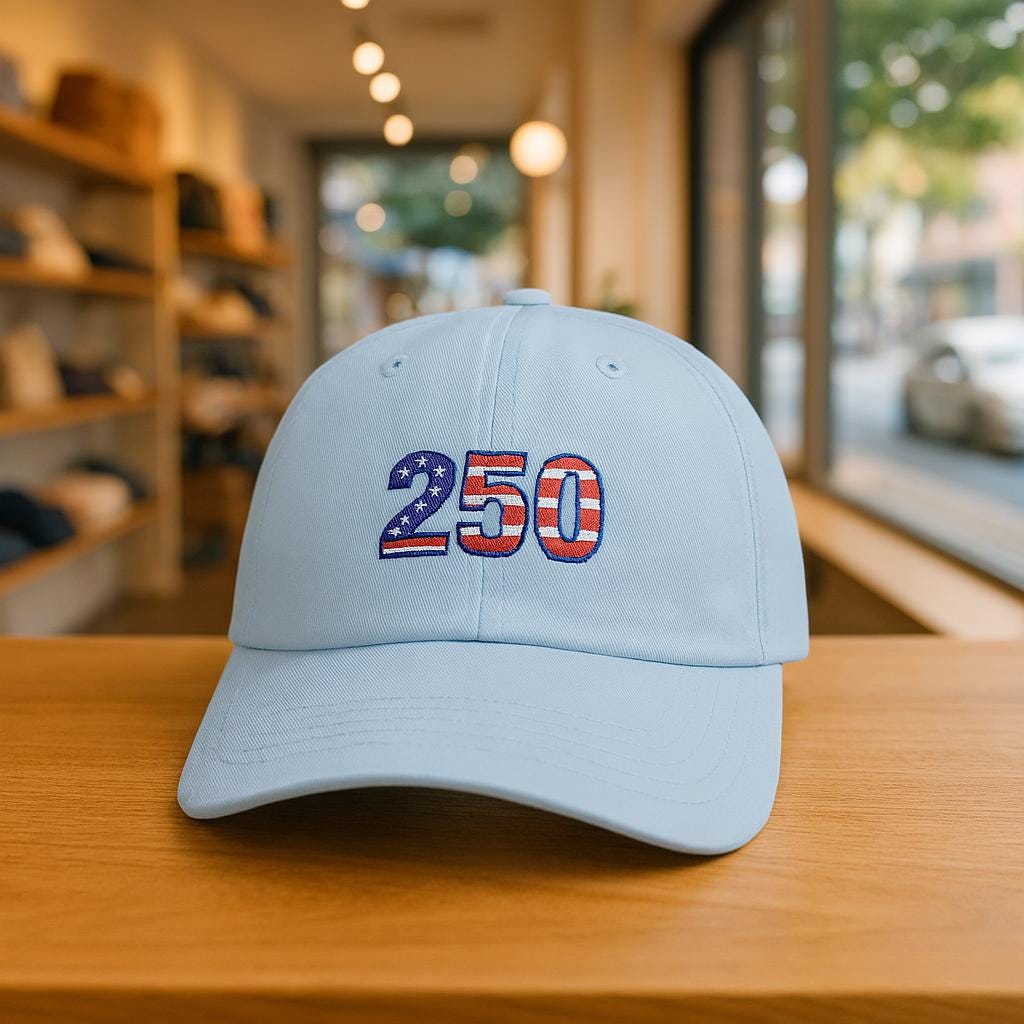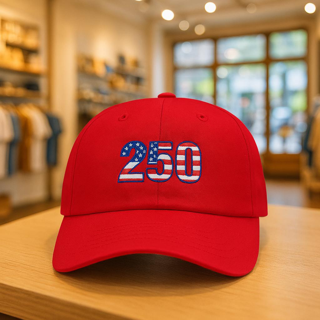 Wear a piece of the celebration. This classic dad cap carries the colors and quiet pride of a 250th anniversary—bold red, white, and blue stitched across a relaxed crown, with 1776-2026 embroidered on the side as a subtle nod to history. It settles low and easy on the head, the pre-curved Permacurv® visor cutting sun glare while the color-matched underbill keeps the look cohesive. Adjust the hideaway strap and antique brass buckle until it feels like yours. It’s the kind of cap you pull on for backyard parades, small-town festivals, or long drives with the windows down—an everyday emblem of American heritage that ages into familiar comfort.
