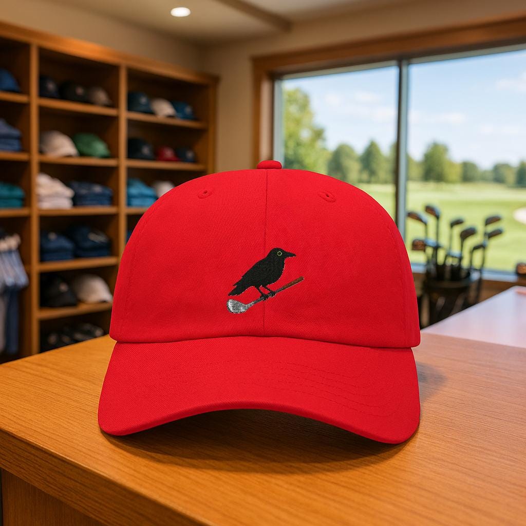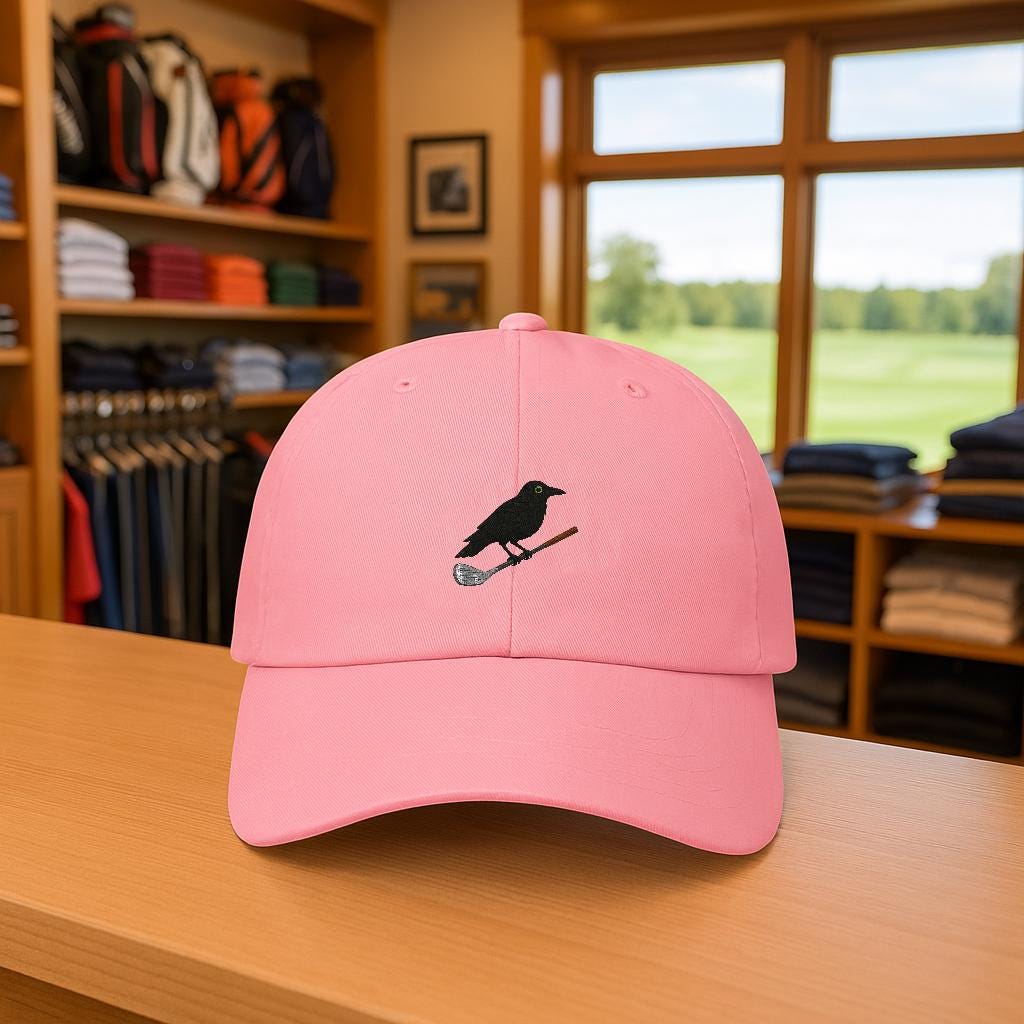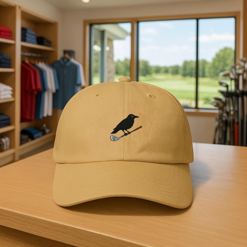 Crow on Golf Iron Dad Cap | Golf Bird Hat, Course Humor