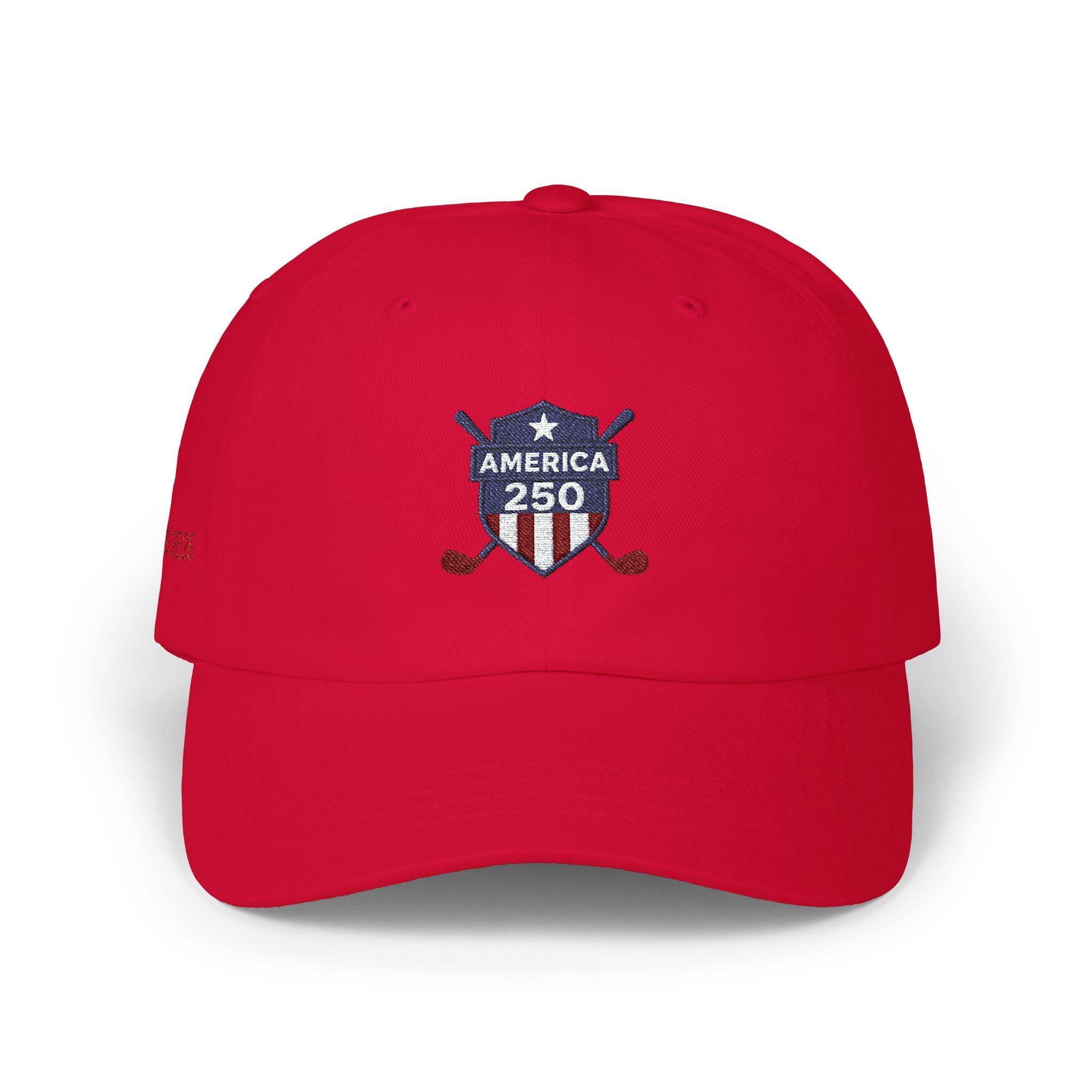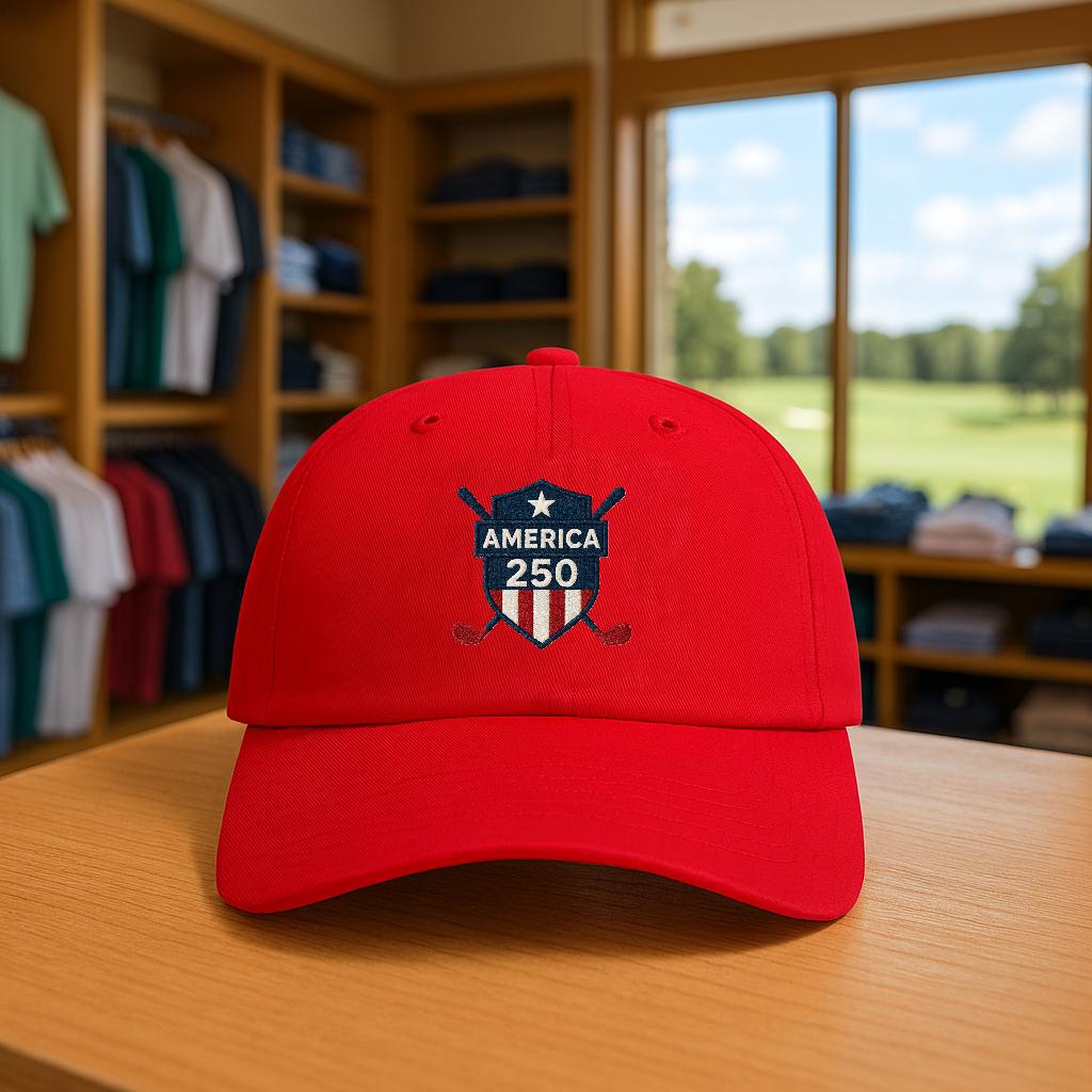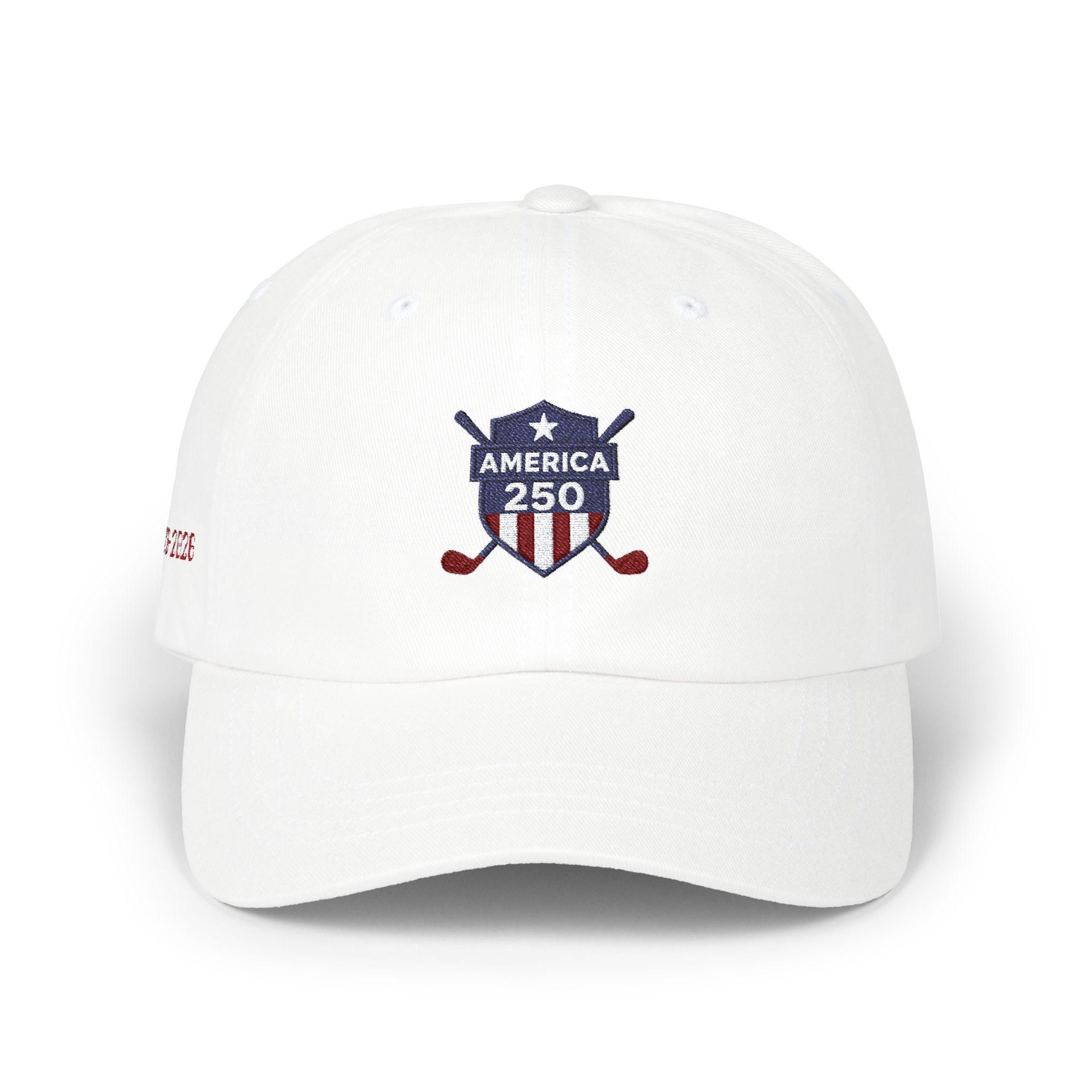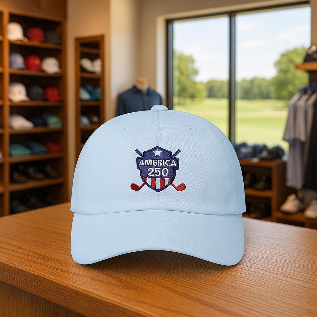 American Shield with Crossed Golf Clubs Classic Dad Cap | USA 250 Celebration