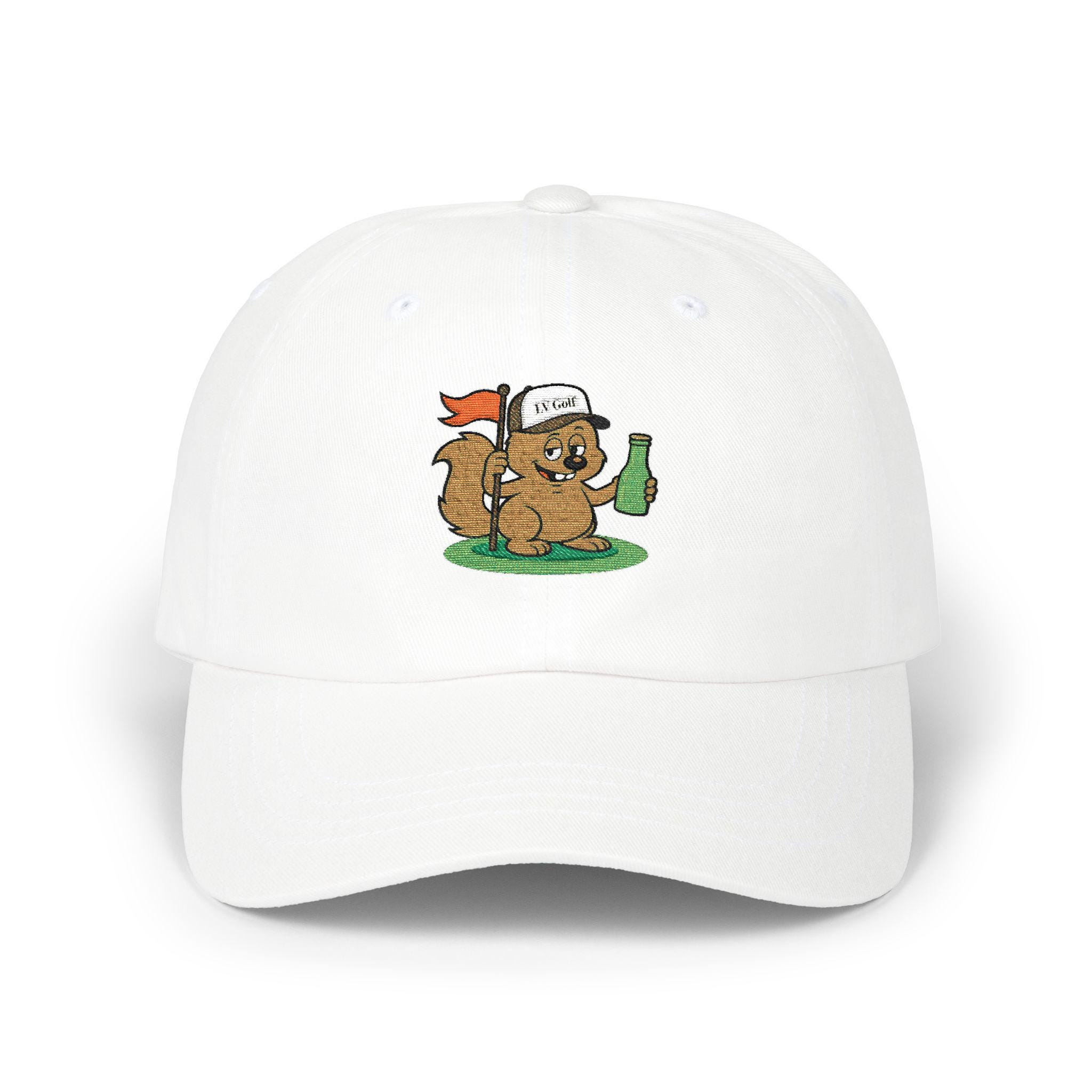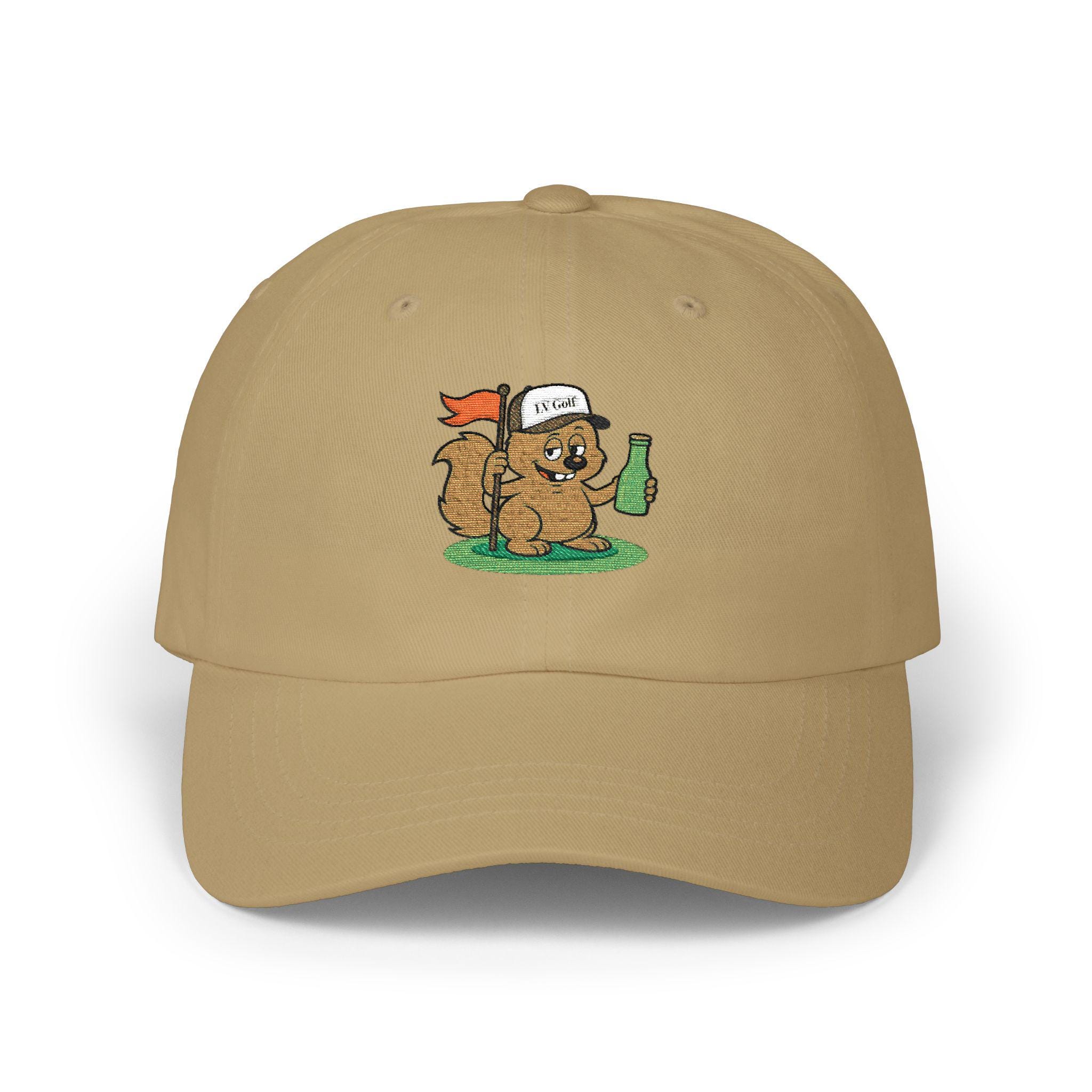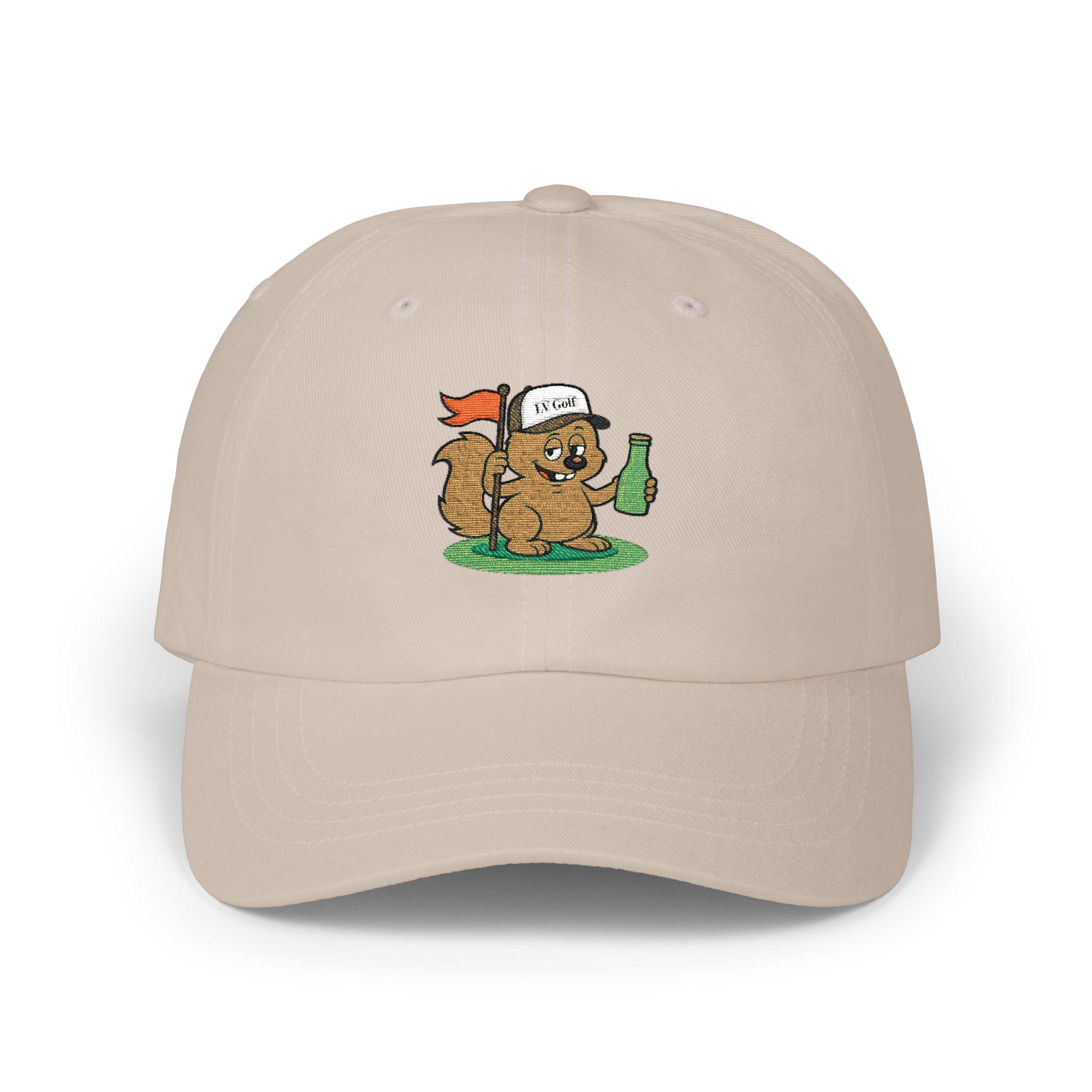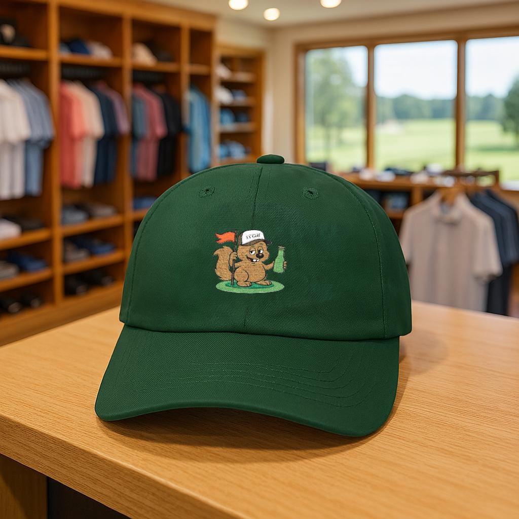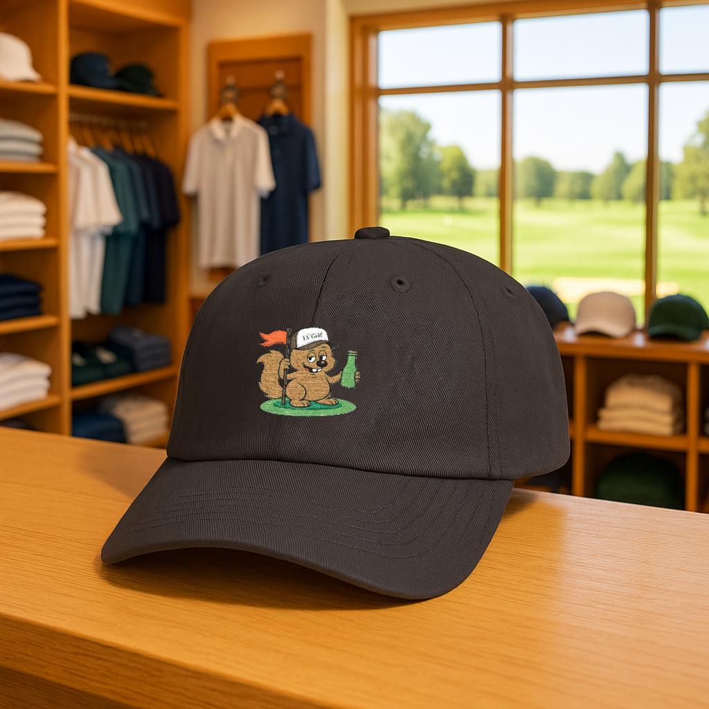 Tipsy Golfing Squirrel Dad Cap | Beer & Flag Golf Hat Logo