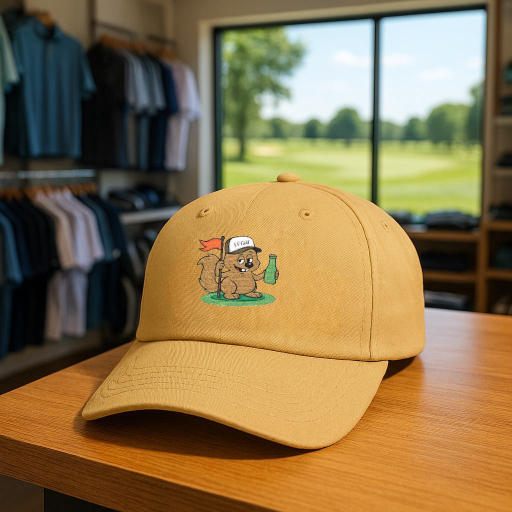 Raise a smile on the back nine with this laid-back cap that tells your golfing crew exactly how the round is going to go: relaxed, loud, and full of laughs. The embroidered Tipsy Golfing Squirrel —flag in one hand, beer in the other—brings a cheeky, clubhouse-ready vibe. Wear it while walking the fairway between shots, leaning on the cart swapping stories, or settling in for a post-round cold one. The low-profile shape keeps the look casual; the precurved visor shades your eyes without getting in the way of a good chip shot. Subtle vintage brass hardware and a sewn-in label give it an honest, well-loved feel that matches the informal, fun-loving golfer who values camaraderie over scorecards.