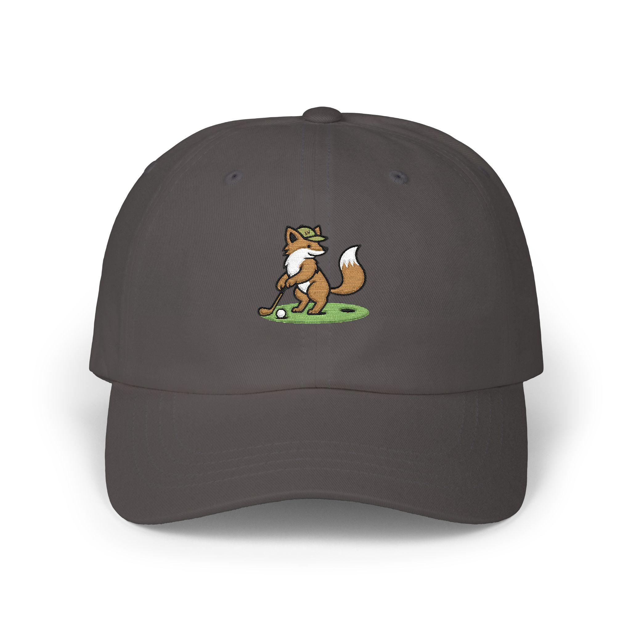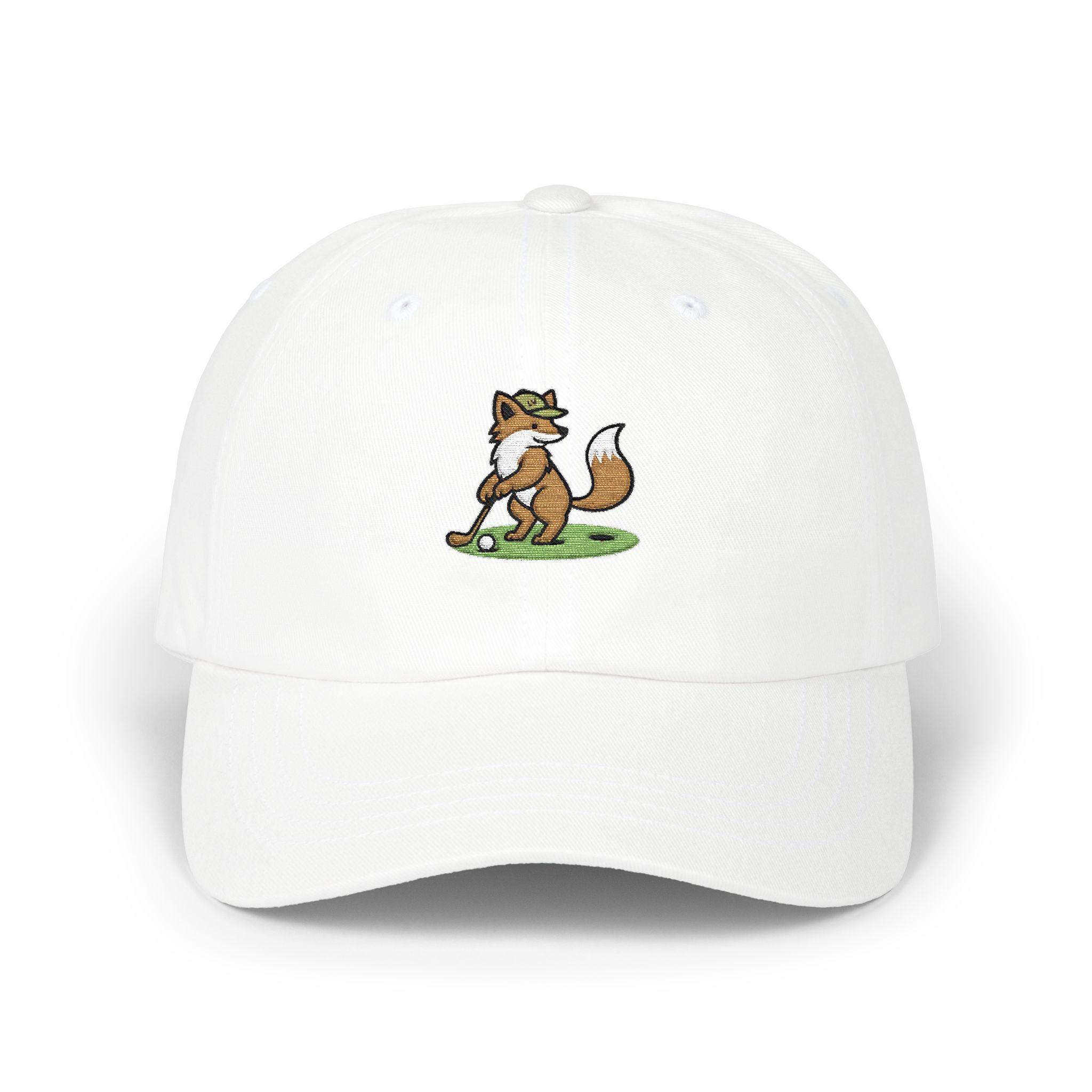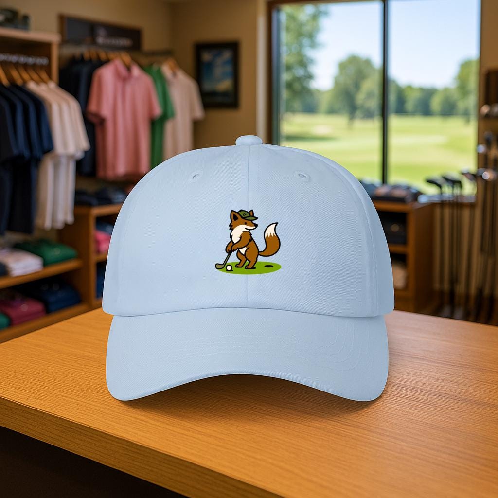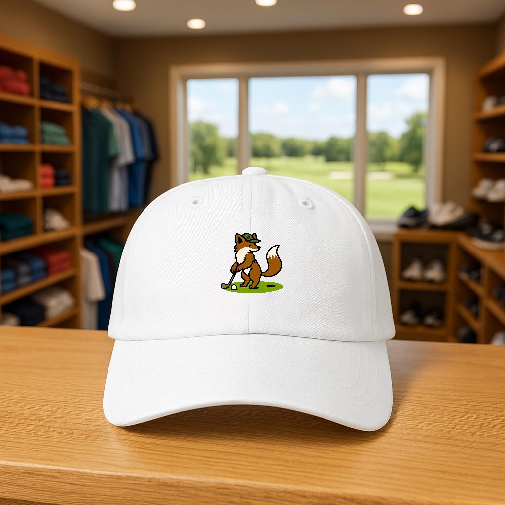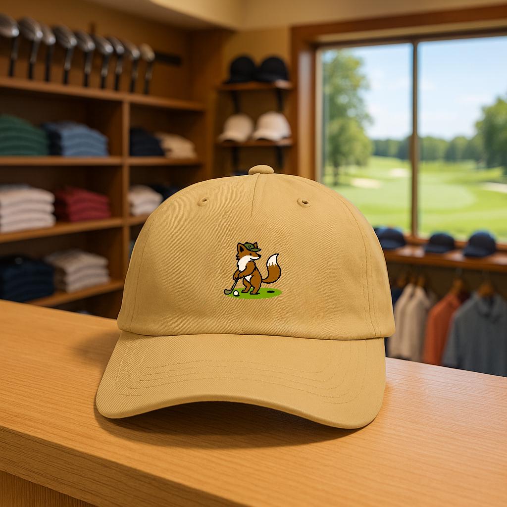 A relaxed, worn-in dad cap that brings a playful slice of the links to everyday life. The embroidered fox lines up a careful putt on the front — a small, witty nod for golfers who like a sense of humor on and off the green. Lightweight cotton and an unstructured, low-profile crown let the cap sit naturally; the pre-curved Permacurv® visor shades your eyes without shouting. The muted underbill matches the top for a tidy look, while the hideaway strap with antique brass hardware lets you find the right fit and keep it secure during a round or a weekend errand. This cap feels like a companion for early-morning rounds, casual clubhouse hangs, and slow drives through quiet neighborhoods — a little personality that reads as confident and relaxed.
