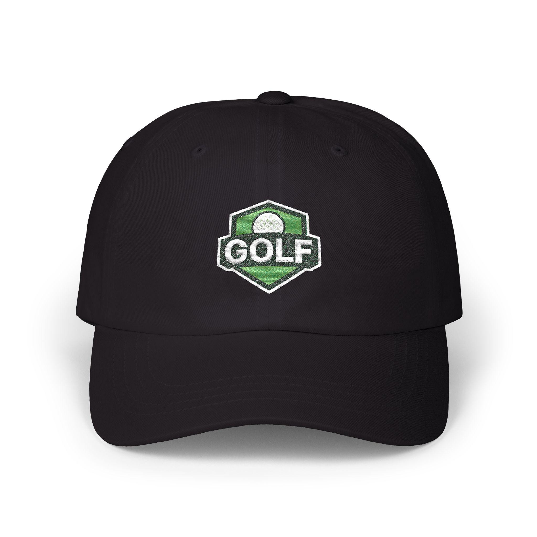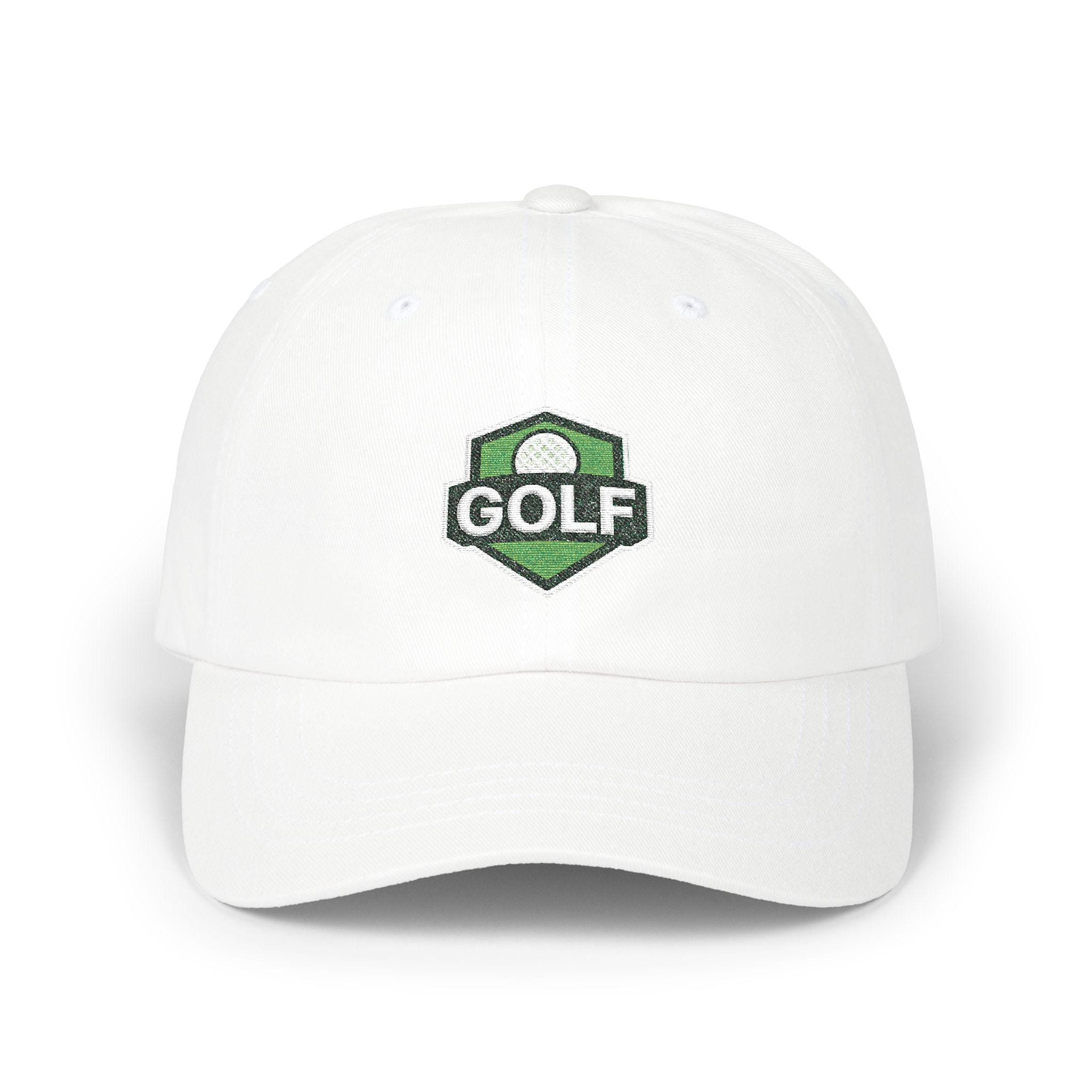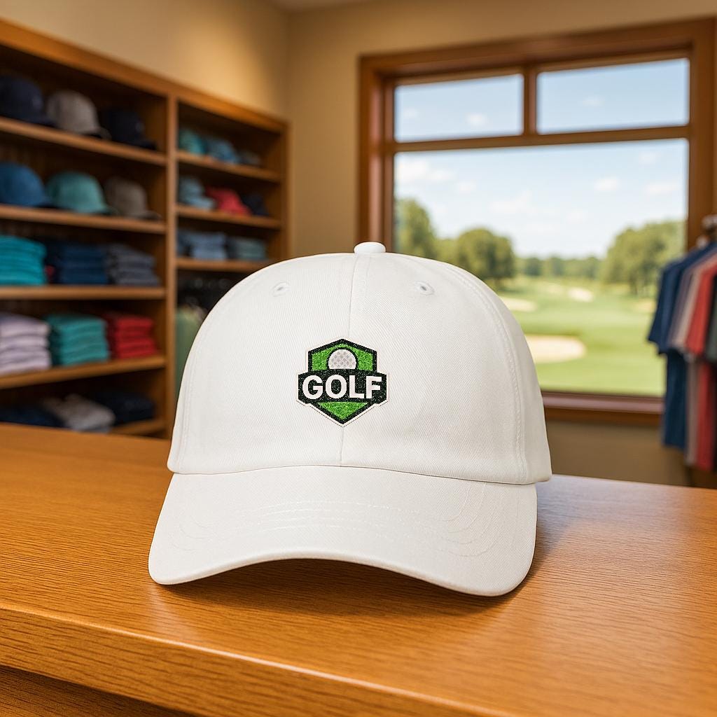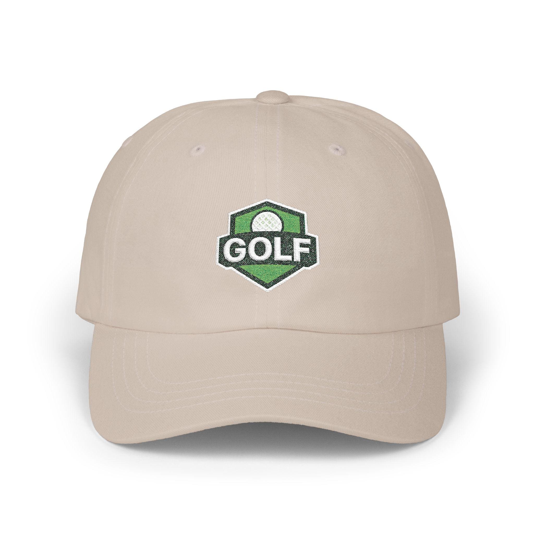 A low-profile, unstructured dad cap embroidered with a refined golf shield logo — made to be worn from the first tee to the clubhouse bar. Soft 100% cotton (with a Green Camo option in a cotton/poly blend) and a precurved Permacurv® visor give it a broken-in feel from day one. The six-panel build with stitched eyelets keeps breathability steady through warm rounds, while the hideaway self-fabric strap and antique brass buckle let you dial in a snug, personalized fit. Small details like the matched underbill, brand sticker on the visor, and sewn-in label give it a quietly polished look. This cap sits low and relaxed, the kind you reach for when you want a bit of sun protection and a lot of slow-course confidence.