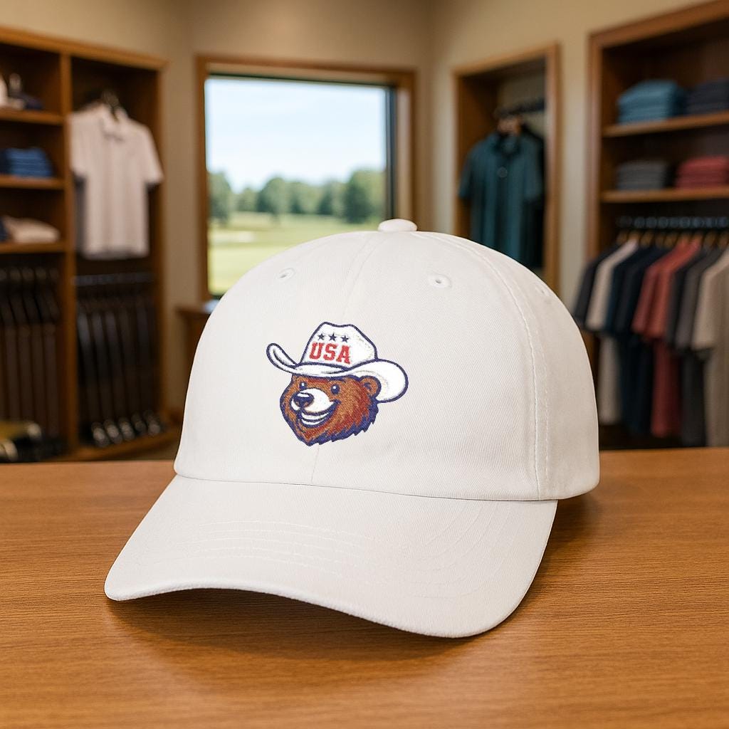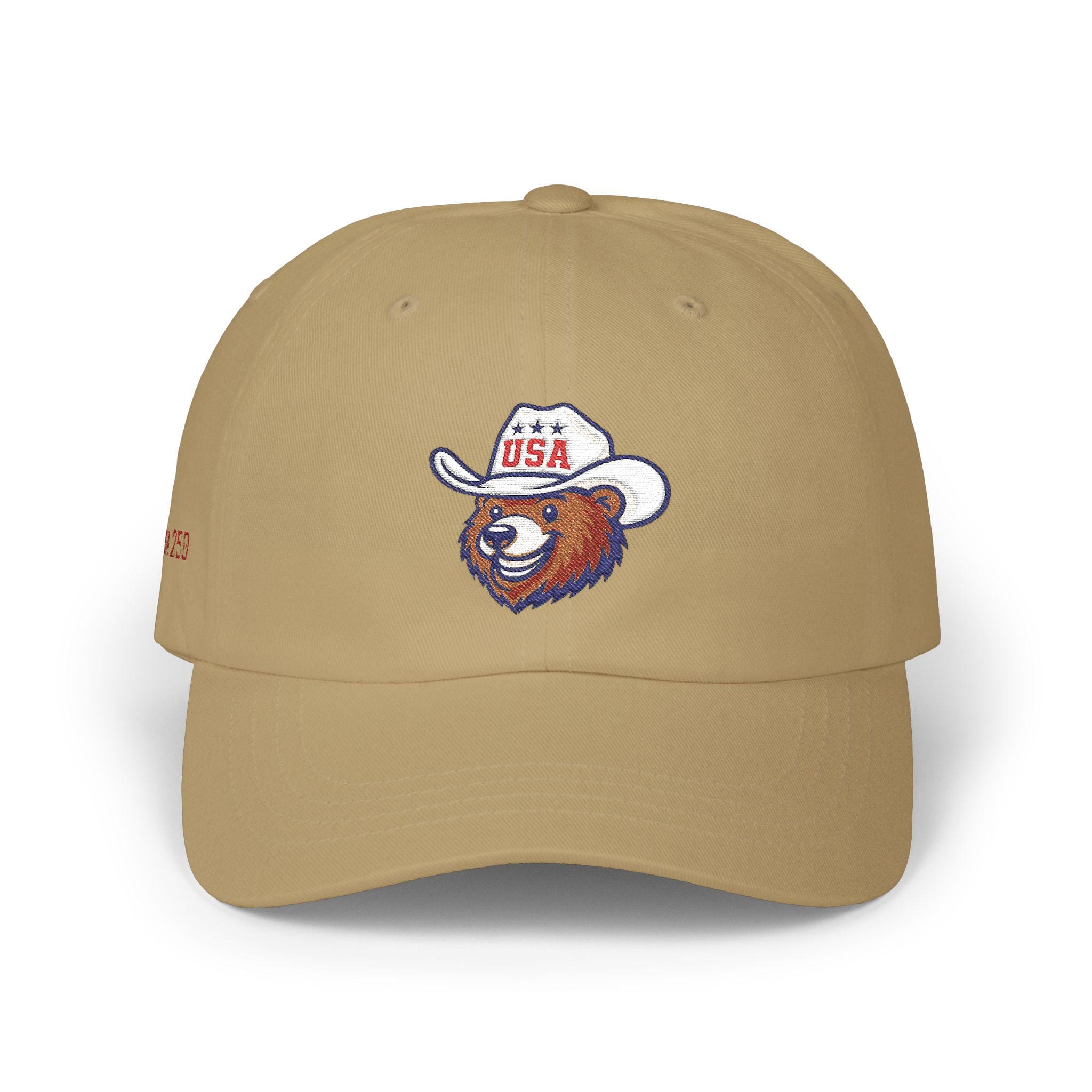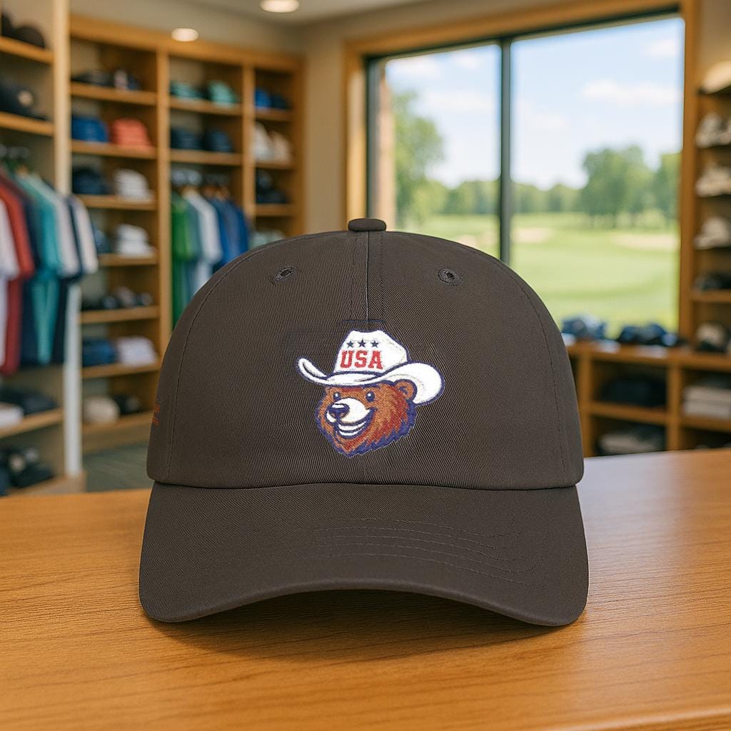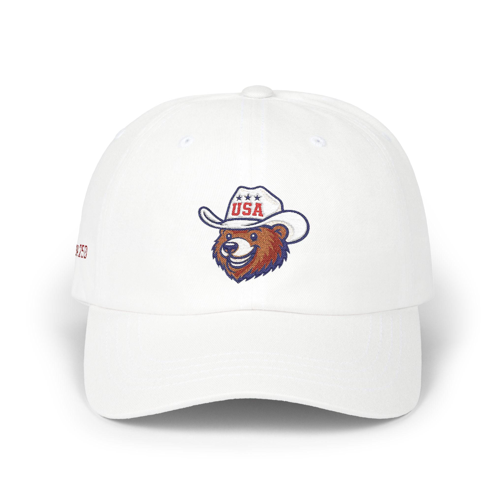Patriotic Bear with USA 250 Cowboy Hat Dad Cap | American Flag Logo