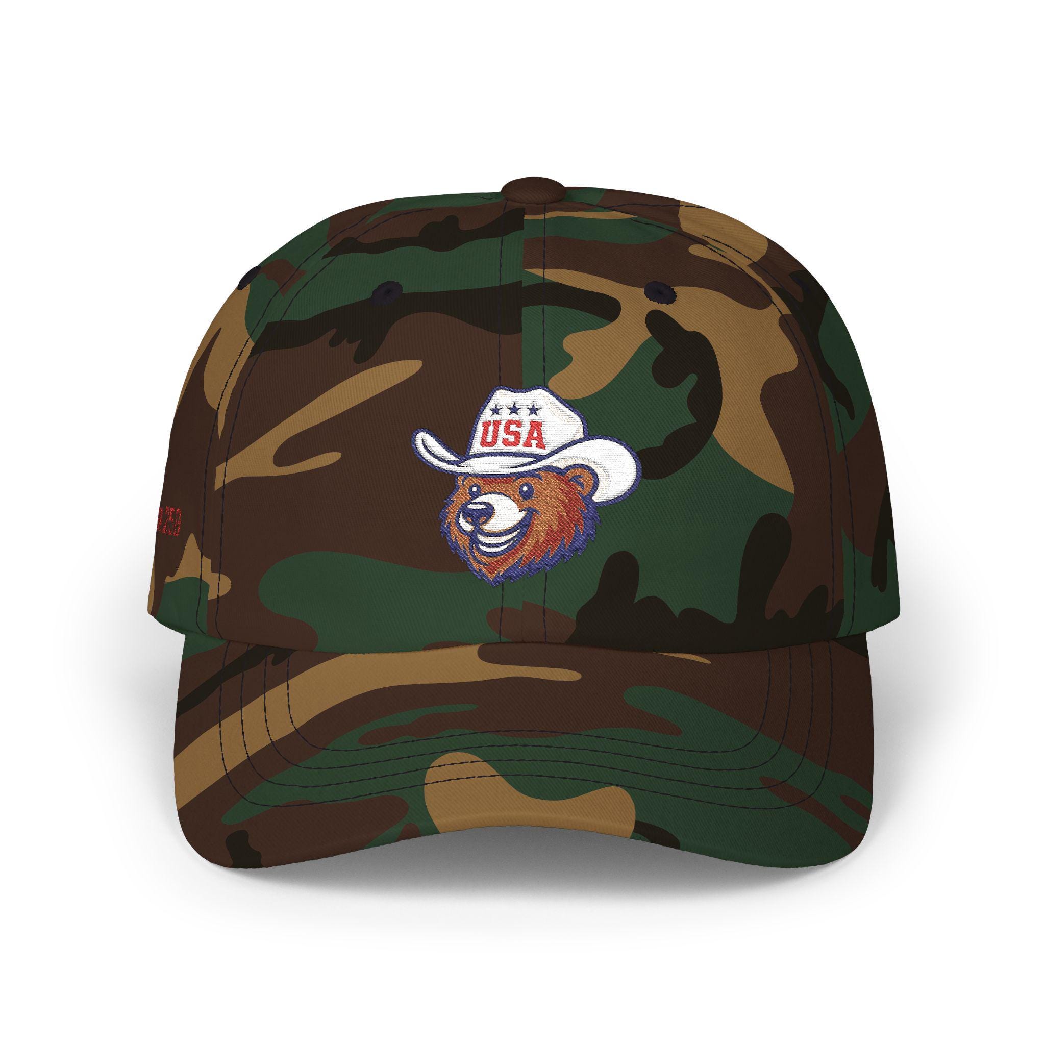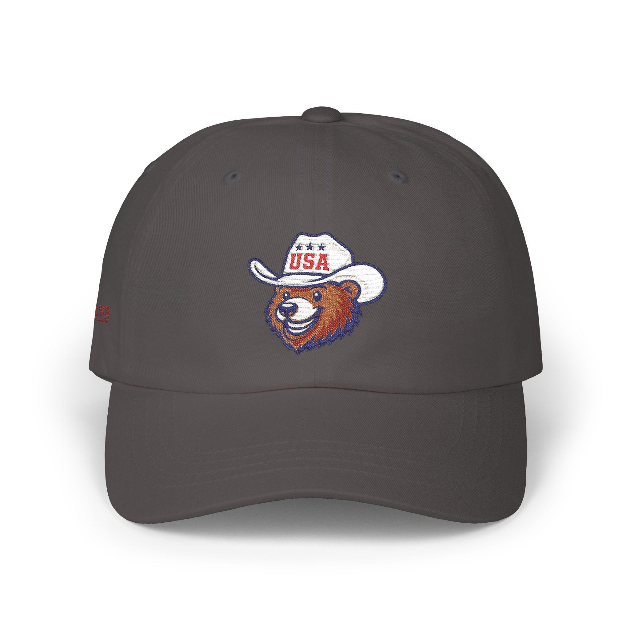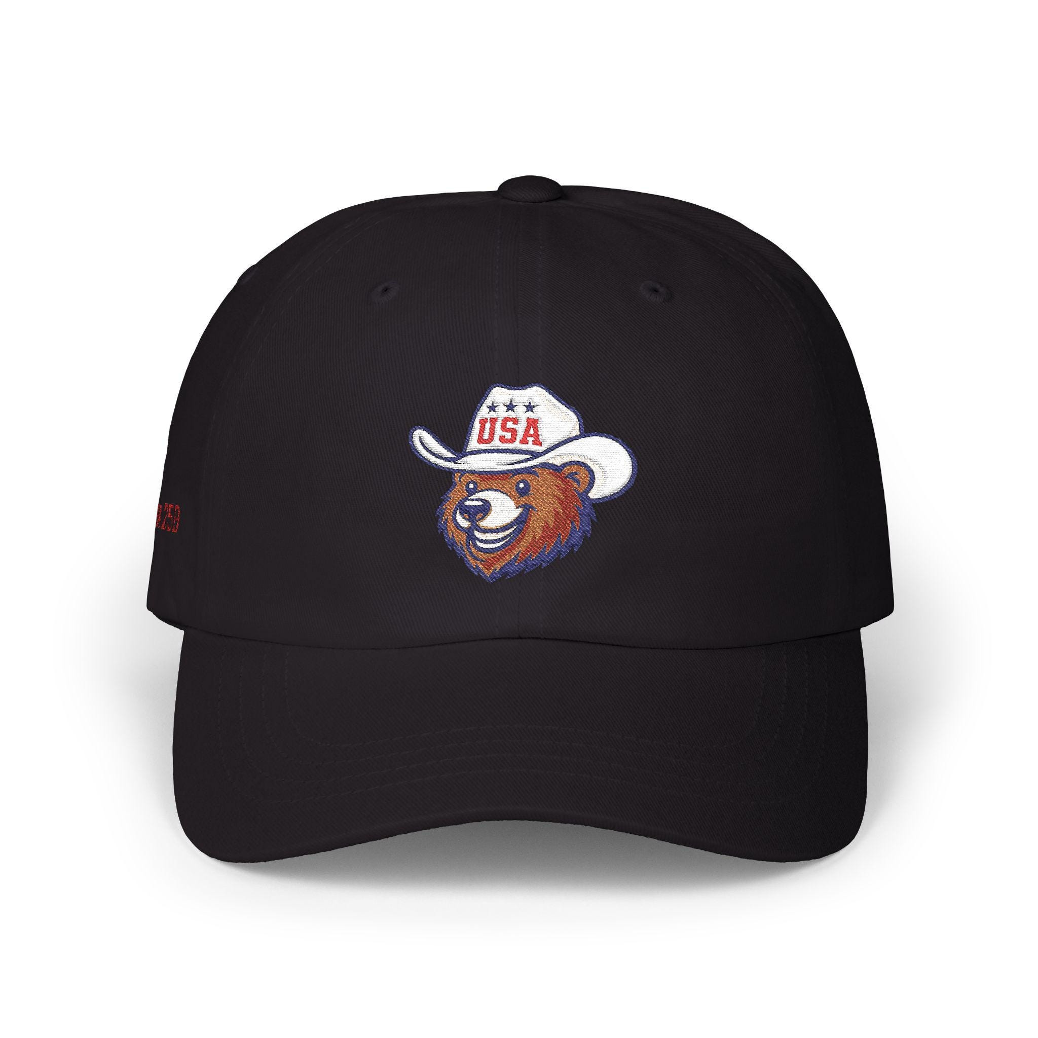 Patriotic Bear with USA 250 Cowboy Hat Dad Cap | American Flag Logo