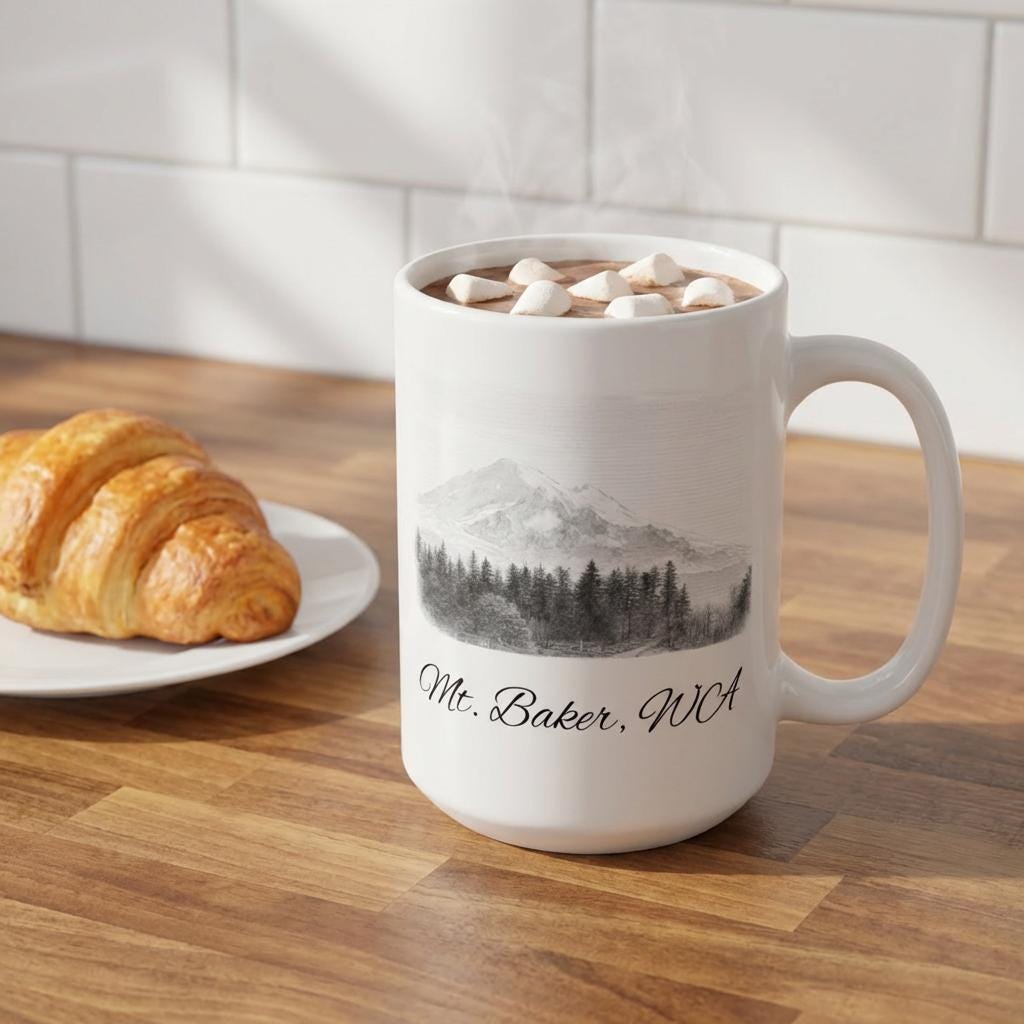 Mt. Baker Scenic Sketch Mug 15oz | Washington Mountain Illustration